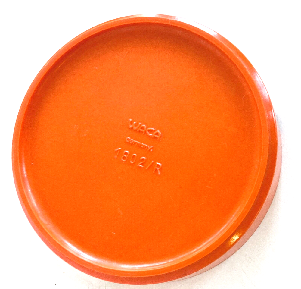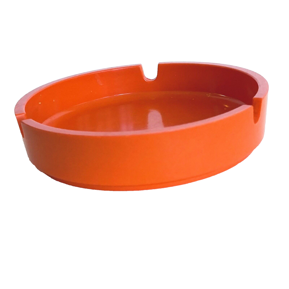 WACA Ashtray Model 1802/R – Made in Germany 1970s–1980s Plastic (Melamine) This boldly colored molded ashtray is a quintessential example of postwar West German industrial design. Made by WACA, a company known for durable melamine household goods, the piece embodies the optimism and practicality of mid-century modern leisure culture. With its minimalist circular form and saturated mod orange hue, it sits comfortably in both retro and contemporary interiors—functioning as either a design object or functional piece.