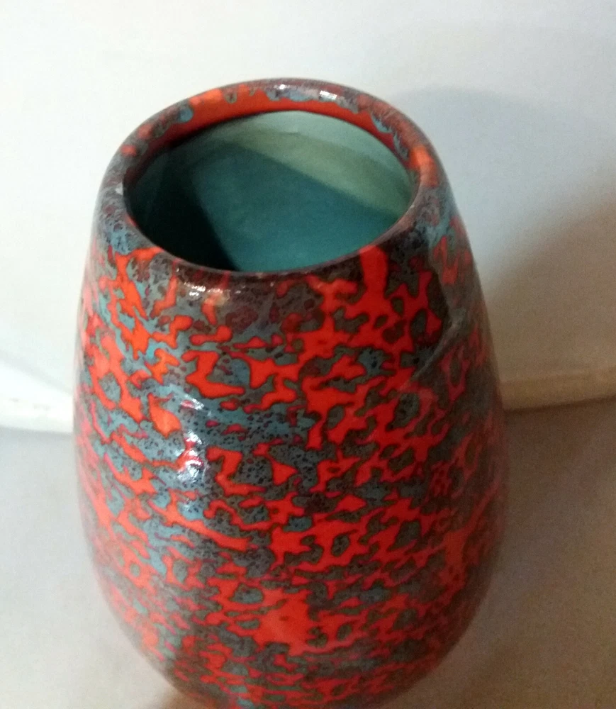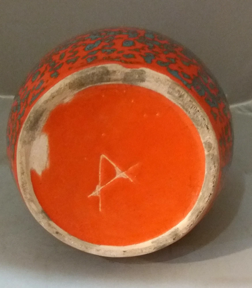 Mid-Century, Modern Cone Shaped Orange Gray Vase, Hungarian Vintage Retro Ceramic Hand shaped and hand painted cone shaped vase with orange and gray, very interesting lively colored glaze. It has good design, modern shape, modern decoration, so a perfect choice in a modern enterieur. Vintage Hungarian ceramic from 1960-70. Height: 18,5cm/7,3inch. Perfect condition, no harm, no damage. We have a modern, mid-century ceramic collection in our E-bay store.