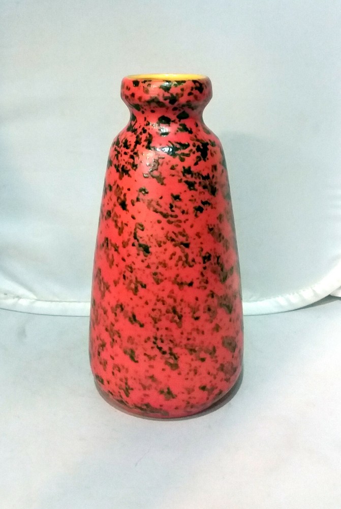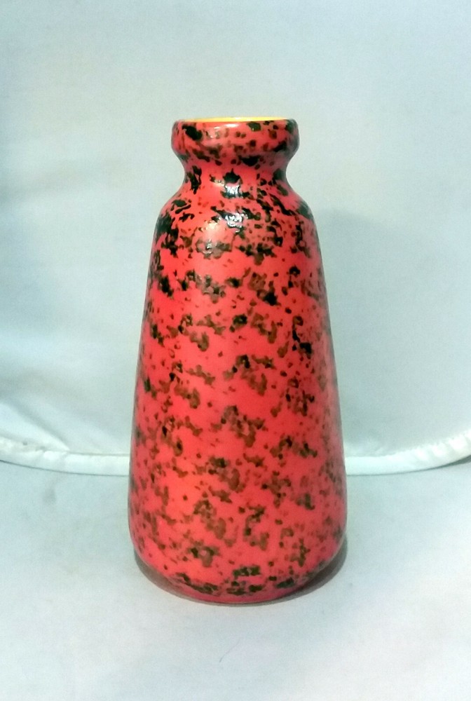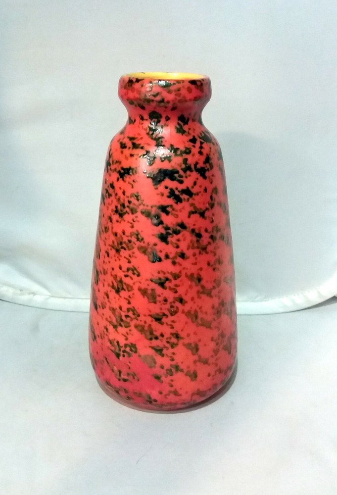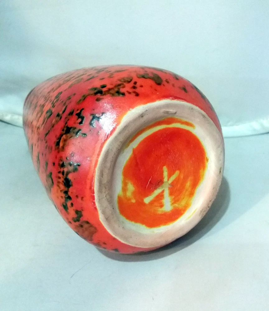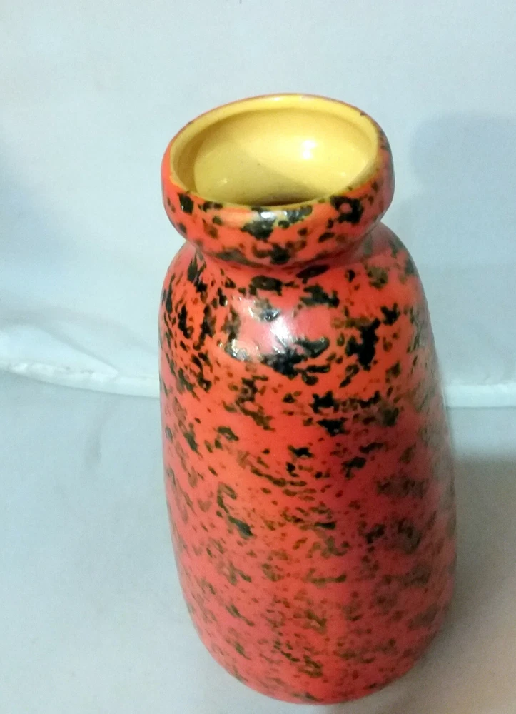 Hungarian vintage ceramic vase. Hand shaped and hand painted orange vase. It has very interesting orange glaze with black dots on the surface and yellow glaze inside. These brand, Tofej was very popular in Hungary and other countries in 1960-70 and they are very collectable today. These have good designe, modern shape, so a perfect choice in a modern enterieur. Tofej, vintage Hungarian ceramic. High: 23cm/9,1inch. Perfect condition. We have a modern, mid-century ceramic collection in our E-bay store. We wrap very safe with double box, bubble wrap and we can ship Worldwide.