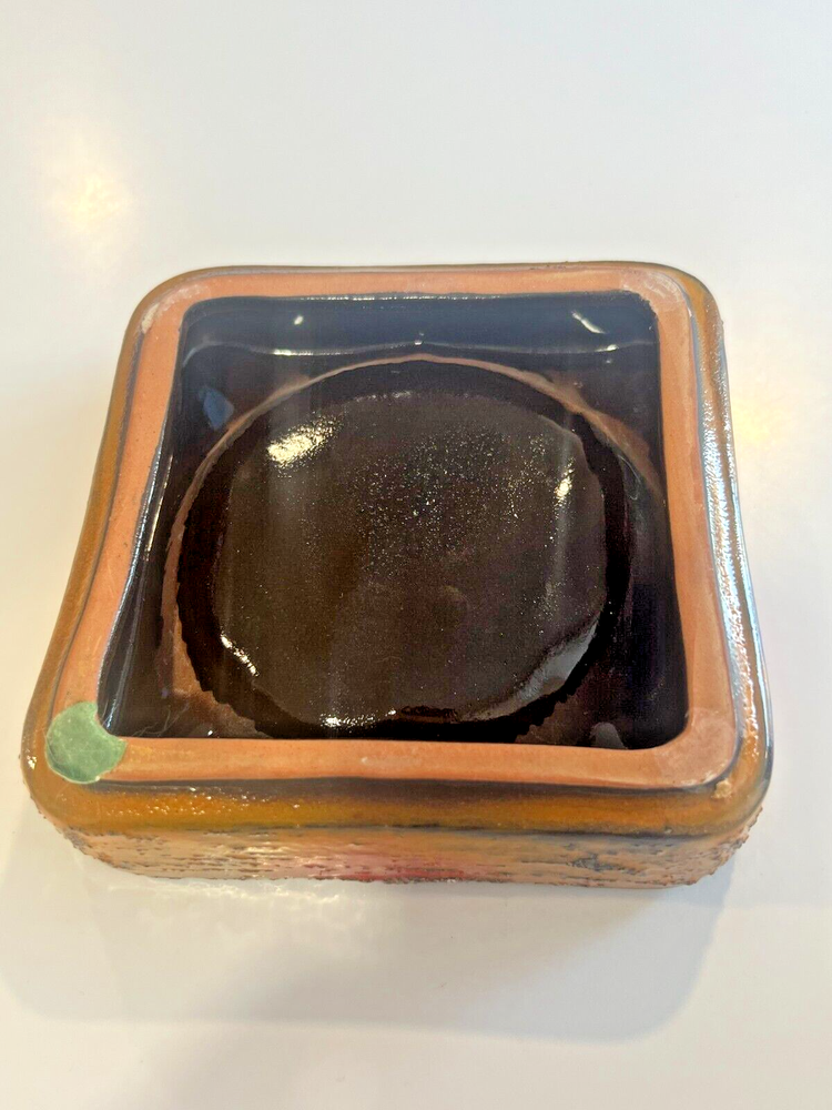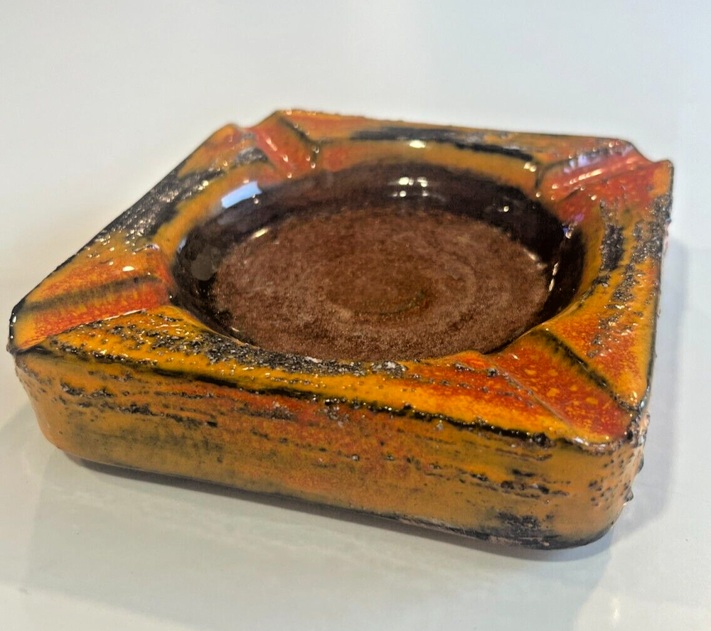 Mid-Century Modern MCM Ceramic Ashtray Orange Textured Lava Glaze 5.5" x 5.5"...