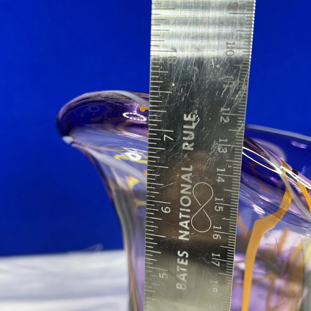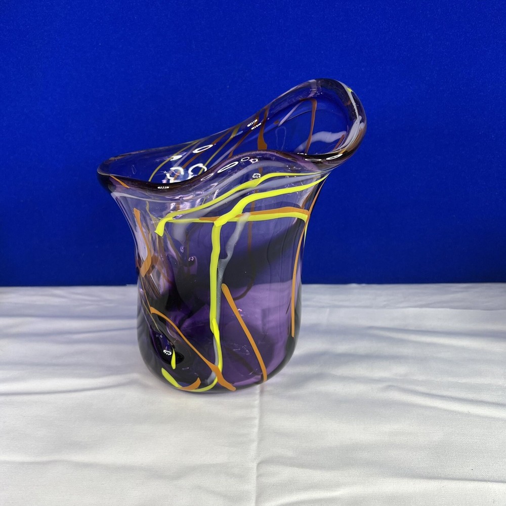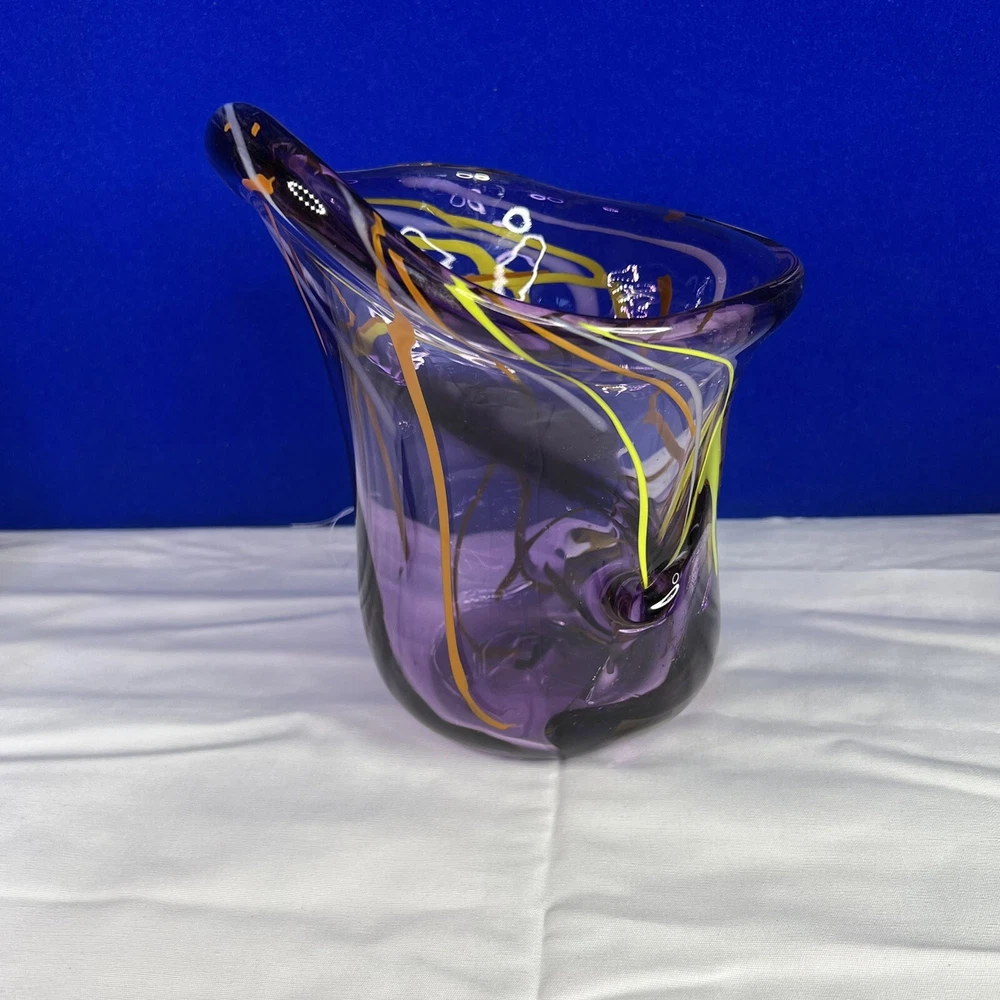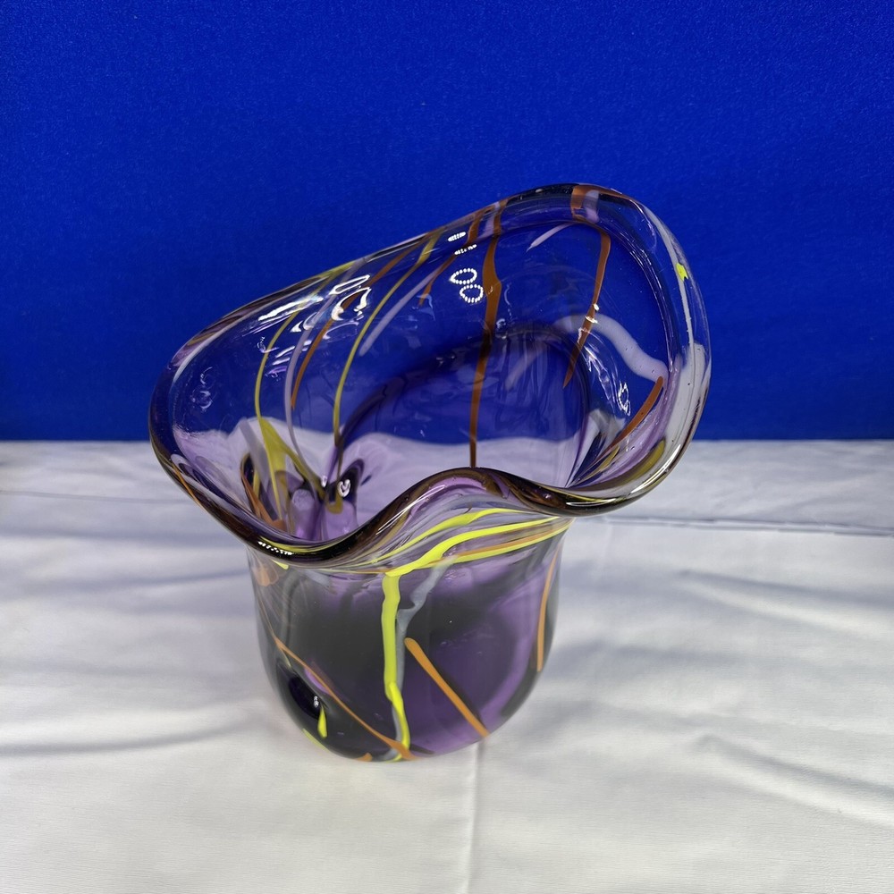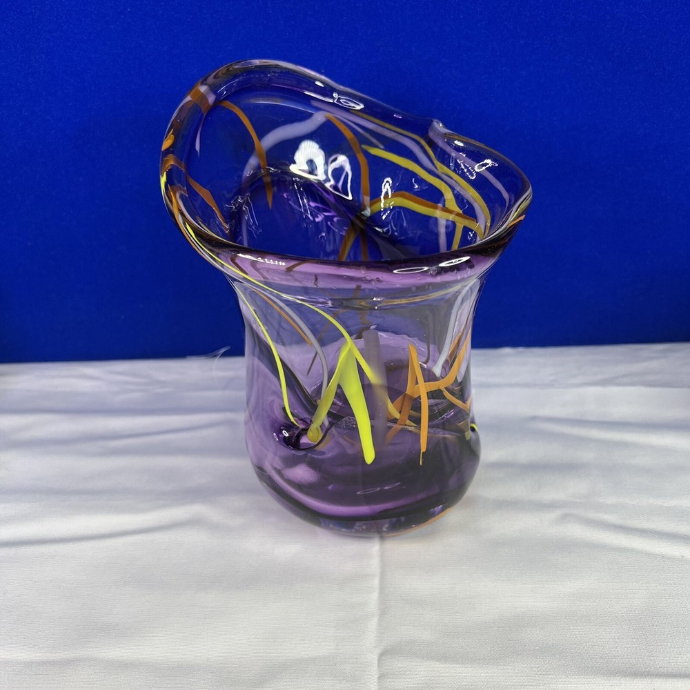 Mid-Century Modern Murano Italian Purple Glass Green/Orange Swirl Vase. Beautiful 7.5” tall, 6” wide approximately. Mid-Century Modern vase with really vibrant colors. See photos. Ask any questions....