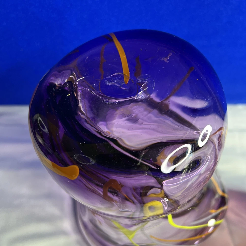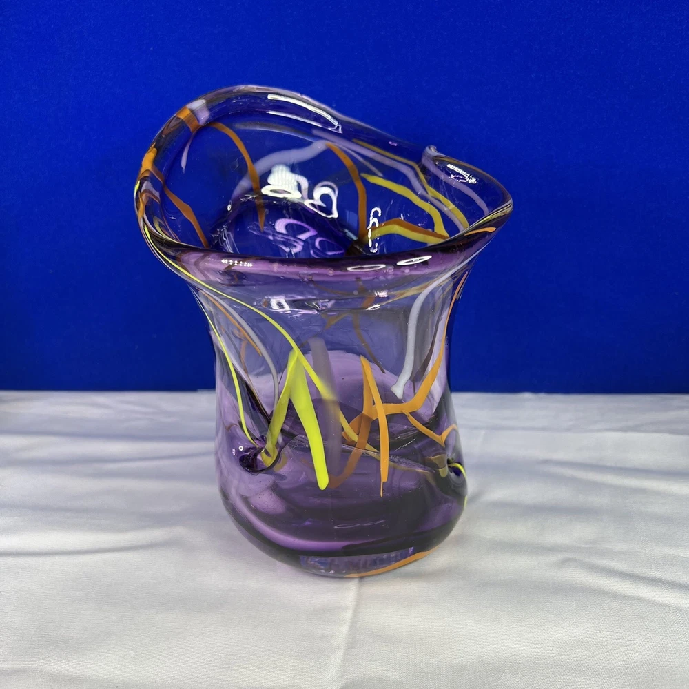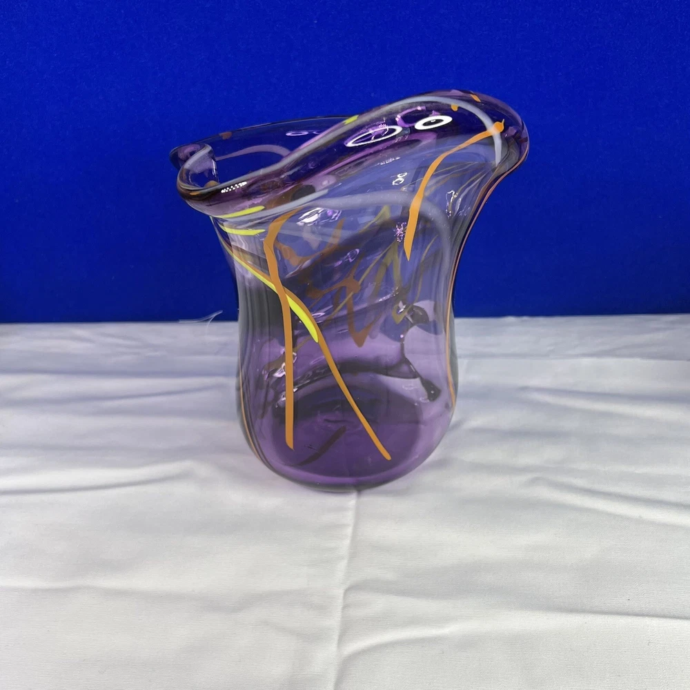Mid-Century Modern Murano Italian Purple Glass Green/Orange Swirl Vase. Beautiful 7.5” tall, 6” wide approximately. Mid-Century Modern vase with really vibrant colors. See photos. Ask any questions.