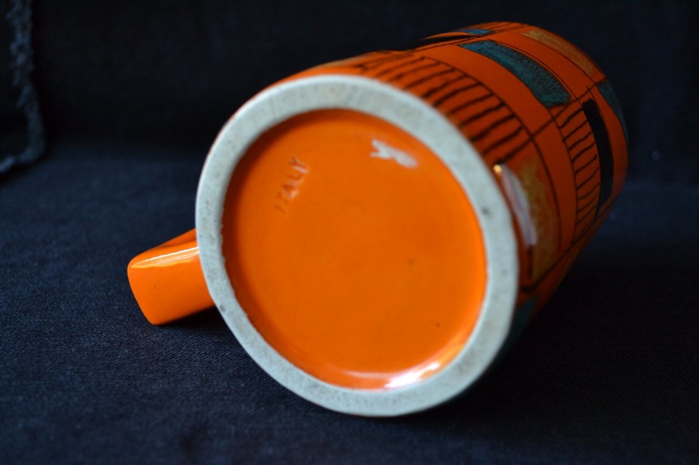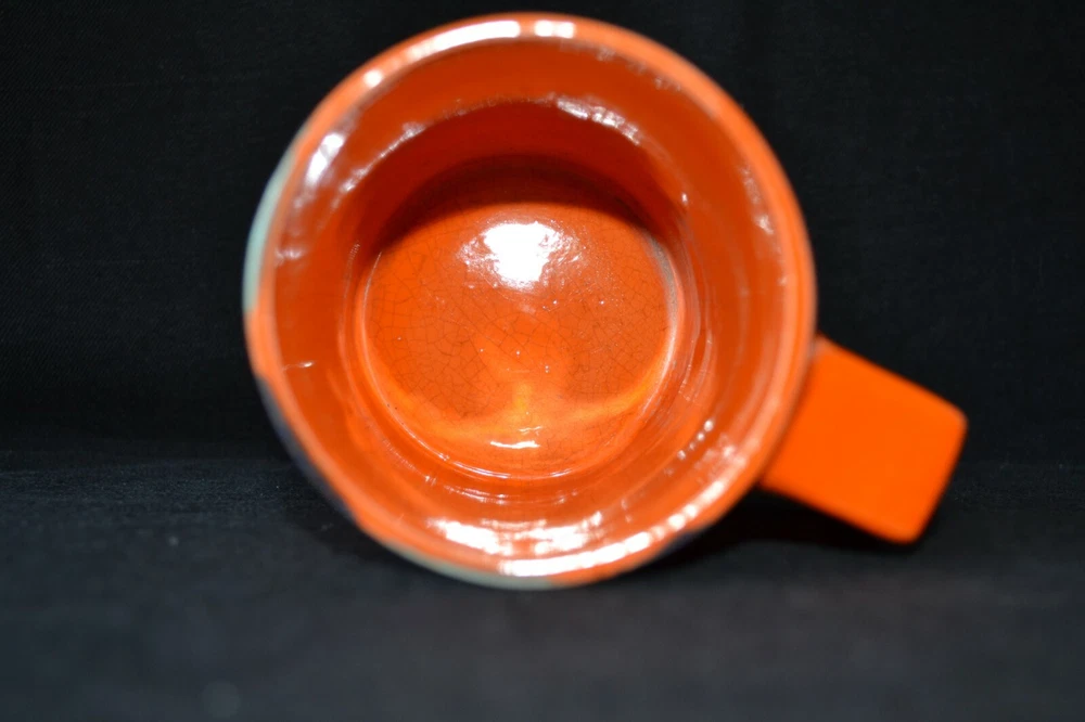Beautiful mug made in Italy. No chips or cracks except on the inside as glaze is lightly crackled. See pictures for details. Stands 13.5 cm tall, 14 cm by 9 cm and weights 335 g.