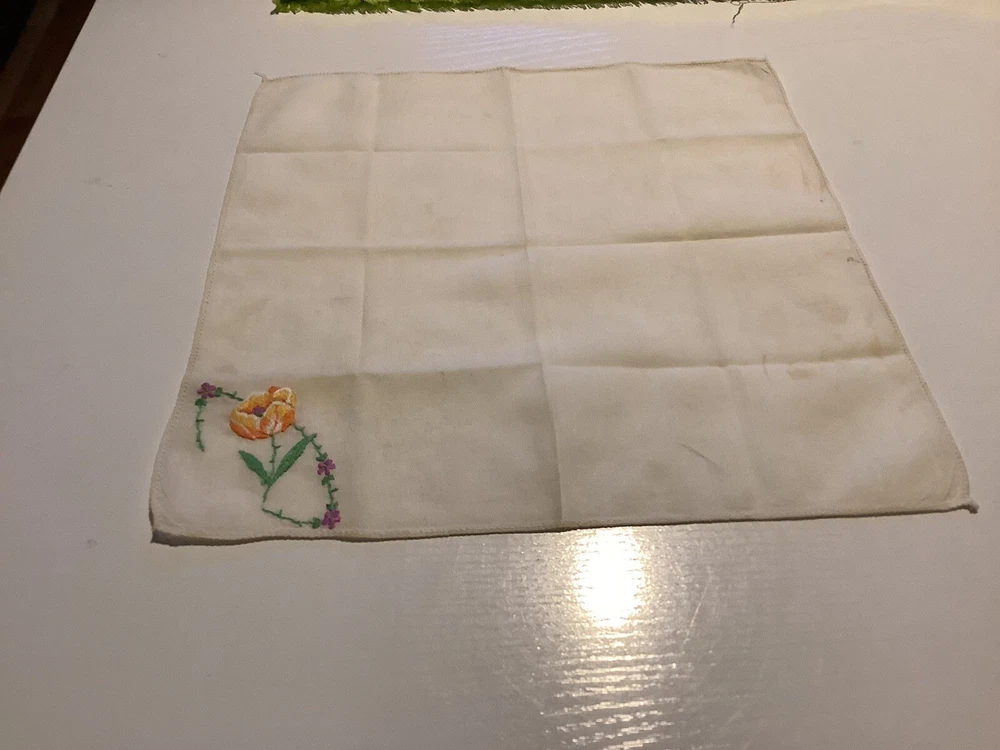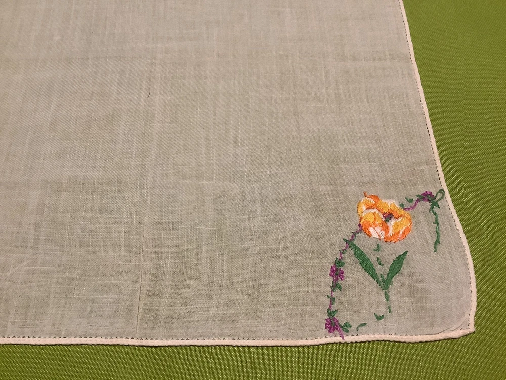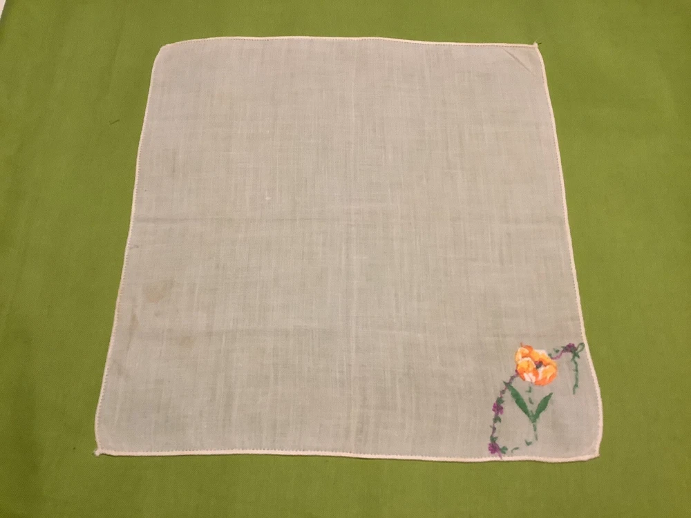 Add a touch of vintage charm to your everyday attire with this Mid-Century Modern embroidered hankie. Featuring a vibrant orange variegated tulip pattern, it's a delightful accessory that brings a hint of nature's beauty to your outfit. The combination of cotton and linen materials ensures both comfort and durability, making it a practical choice for regular use. While unbranded, this hankie boasts a distinctive style that captures the essence of the era. It's designed for women and can be paired with a variety of clothes to enhance your look. Whether it's for personal use or a thoughtful gift, this original piece is a lovely addition to any wardrobe.