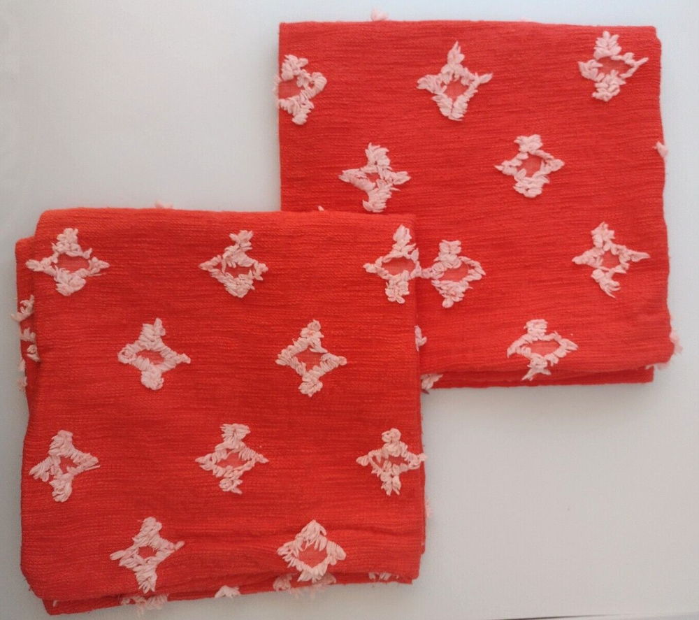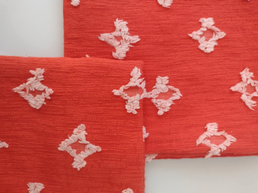 Add a pop of color to your home decor with this set of orange and white pillow covers. Measuring 17x17 inches. The mid-century modern look is perfect for any home, and the vibrant orange color will add a touch of warmth to any room. These pre-owned pillow covers are made of cotton and linen materials and have been well-maintained. The white design on the textured orange fabric has the look of chenille. Suitable for any home and perfect for adding a cozy touch to your living room or bedroom. Please contact me with any questions. Also have a look at the variety of other items to offer.