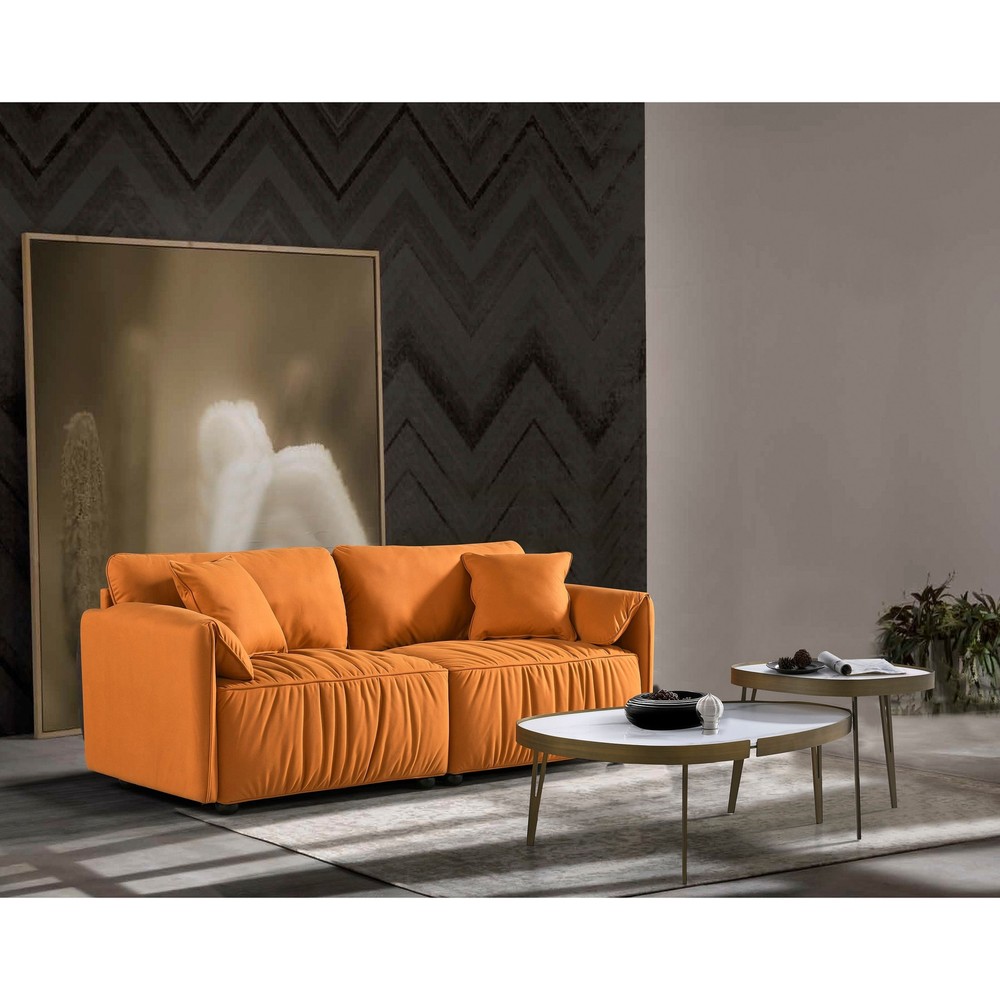 This stylish orange sofa is a perfect blend of comfort and mid-century modern design. Its deep seats and ergonomic shape make it great for lounging, napping, or hosting friends. The sturdy frame and clean lines add a sleek touch to any space, whether it's an apartment or a house. Spacious enough for two or three people, it’s both cozy and functional—ideal for relaxing or socializing. The rolled armrests and backrest give it a timeless look while keeping comfort a priority. A fantastic addition to any modern home!