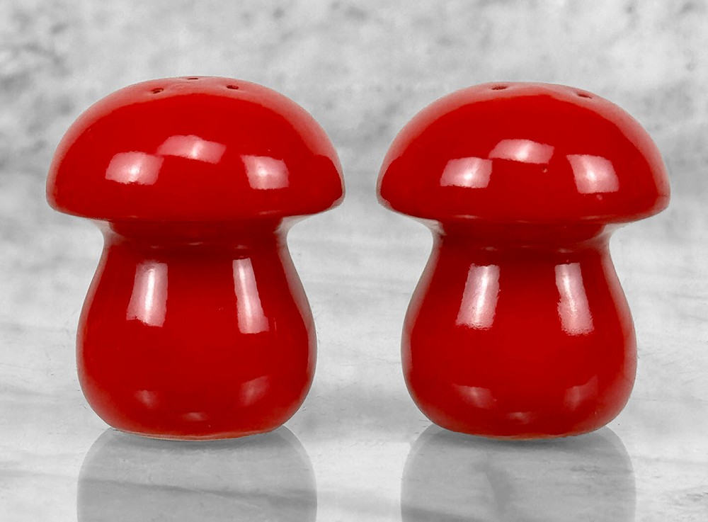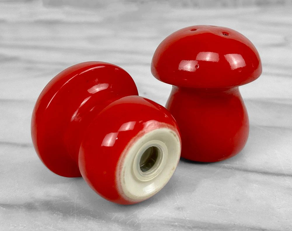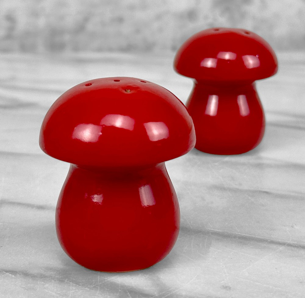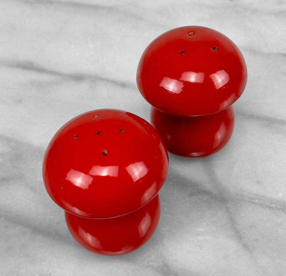 Vintage Orange/Red Glazed Pottery Mushroom Salt & Pepper Shakers, c. Mid 20th Century Pairs Nicely with Many Mid-Century & Eclectic Interiors Vibrant Red/Orange Glazed Porcelain Mushrooms Matching Pair Perforated Tops Marked "S & P" Rubber Cork Bottoms Unsigned or Marked Age: c. Mid 20th Century Dimensions: Each: 2 ″ wide x 2.5″ tall x 2″ deep Condition Report: Each Mushroom Shaker is in overall good condition without any cracks, chips or repairs shown. There isn't previous signs of use shown to the interiors. FREE USA Shipping: How does it work? After purchasing, your item(s) will be professionally packaged with premium quality packing materials – We go above & beyond during the packing process. Our orders ship via UPS Ground with full insurance and tracking included. Please allow 1-3 business days for your order to ship. Shipping applies only to the Continental U.S, this excludes Hawaii, Alaska and Puerto Rico. Local Pickup is available at our Scranton Pennsylvania Warehouse location Have a Question? Send us a message We’re super responsive and here to make your purchase as easy as possible! Inventory: BR-02