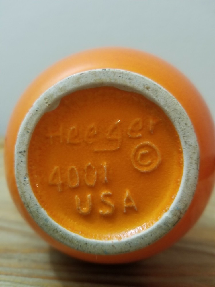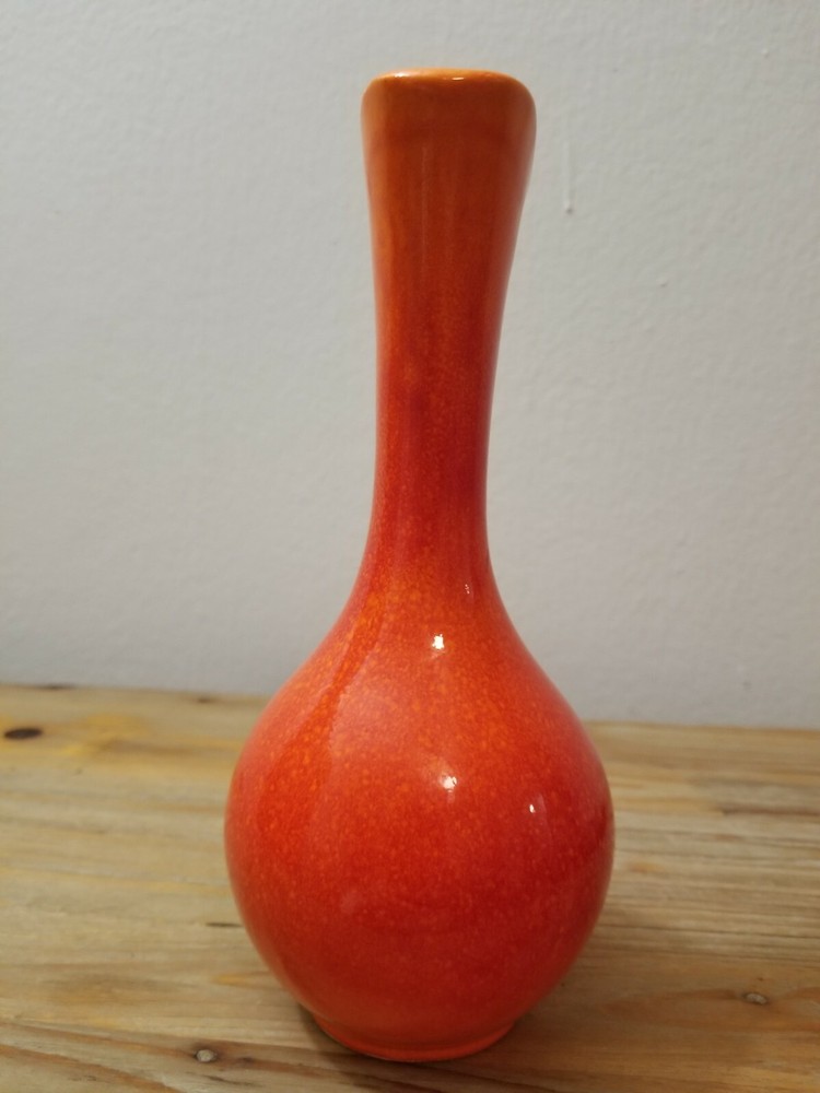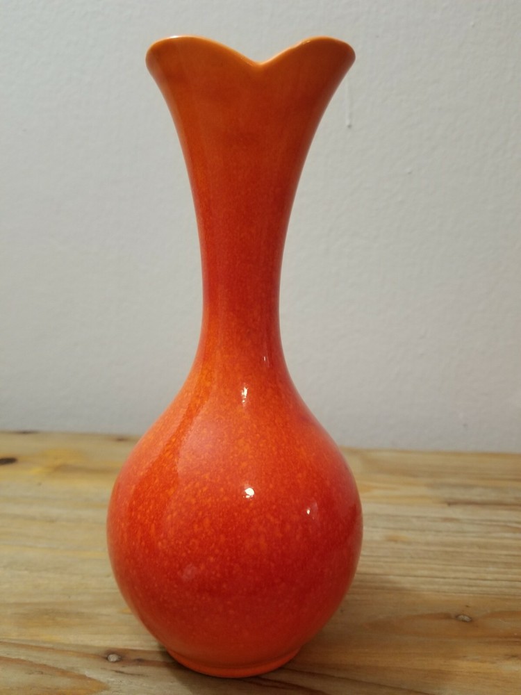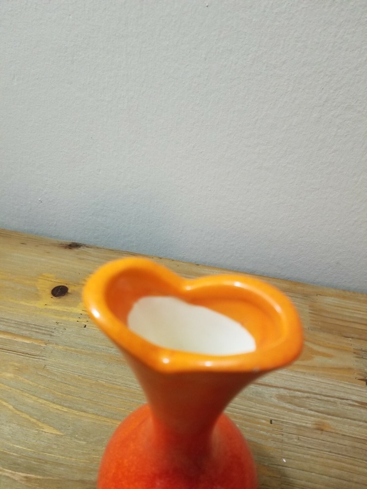 Mid-Century Red/Orange Haeger Ceramic Vase 8"x 2½" & 11" Diameter at Bottom...