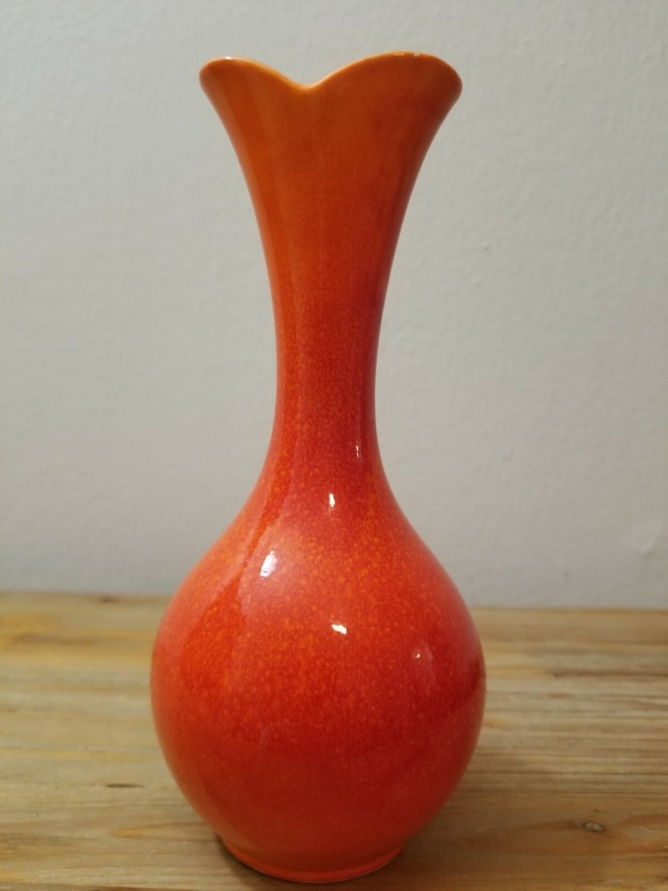 Mid-Century Red/Orange Haeger Ceramic Vase 8"x 2½" & 11" Diameter at Bottom