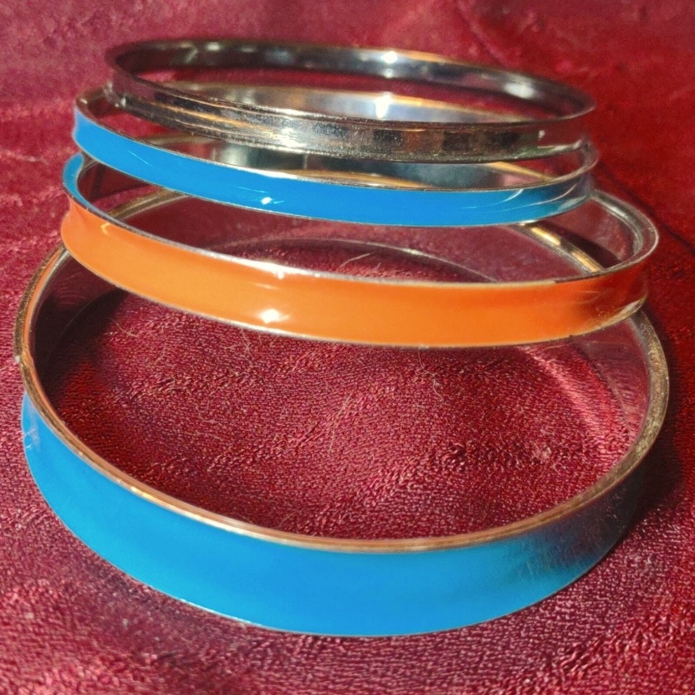 <![CDATA[<div>Mid-century / Vintage~gorgeous blue and orange enamel bracelets...
