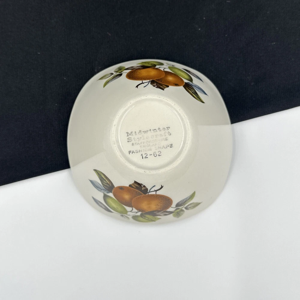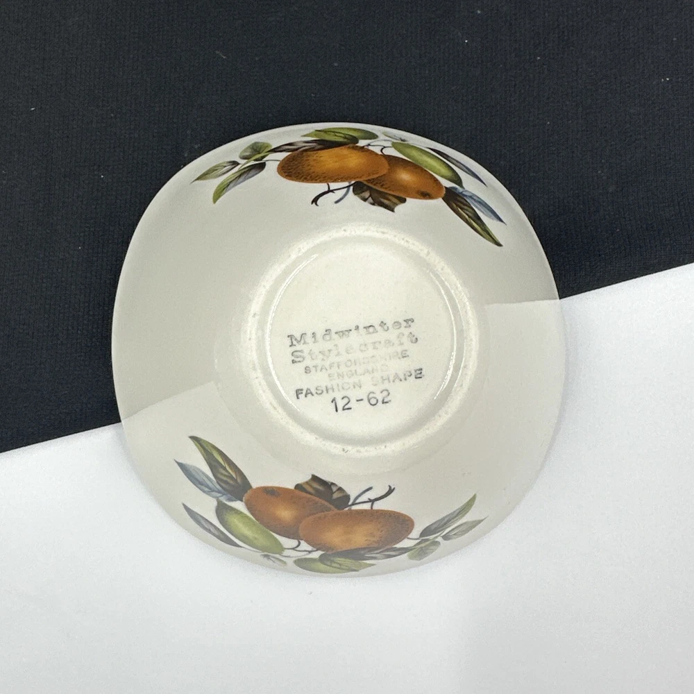 This stunning mid-century modern bowl from Midwinter's Stylecraft line features a vibrant pattern of oranges and lemons on a glossy, multicolor stoneware finish. The square bowl has a 5" width and a 2 1/4" depth, making it the perfect size for serving or display. The bowl is stackable and bears a printed backstamp, and was produced using traditional pottery techniques in the United Kingdom in 1968. This original piece is part of the Fashion Shape product line and is in excellent condition, ready to be enjoyed for all occasions. USED- That shows nothing but pride of prior ownership. With no chips, cracks or glaze crazing. Please study the photos to assess condition for yourself as they are an important part of the description and if you should have any questions, please do not hesitate to reach out. • Condition is: USED • Last Photos Details Measurements • Shipped via: USPS Ground Advantage™ - Insured for up to $100. • Delivery & Packing - I take great pride in ensuring that your items are packed and arrive to you safely. Please see my feedback as this has been mentioned many times. Often your item will ship the same day if payment is received by 1:00 pm. PST, not including weekends or holidays. • Combined shipping is always a option. Simply request at check out. •20DFA49