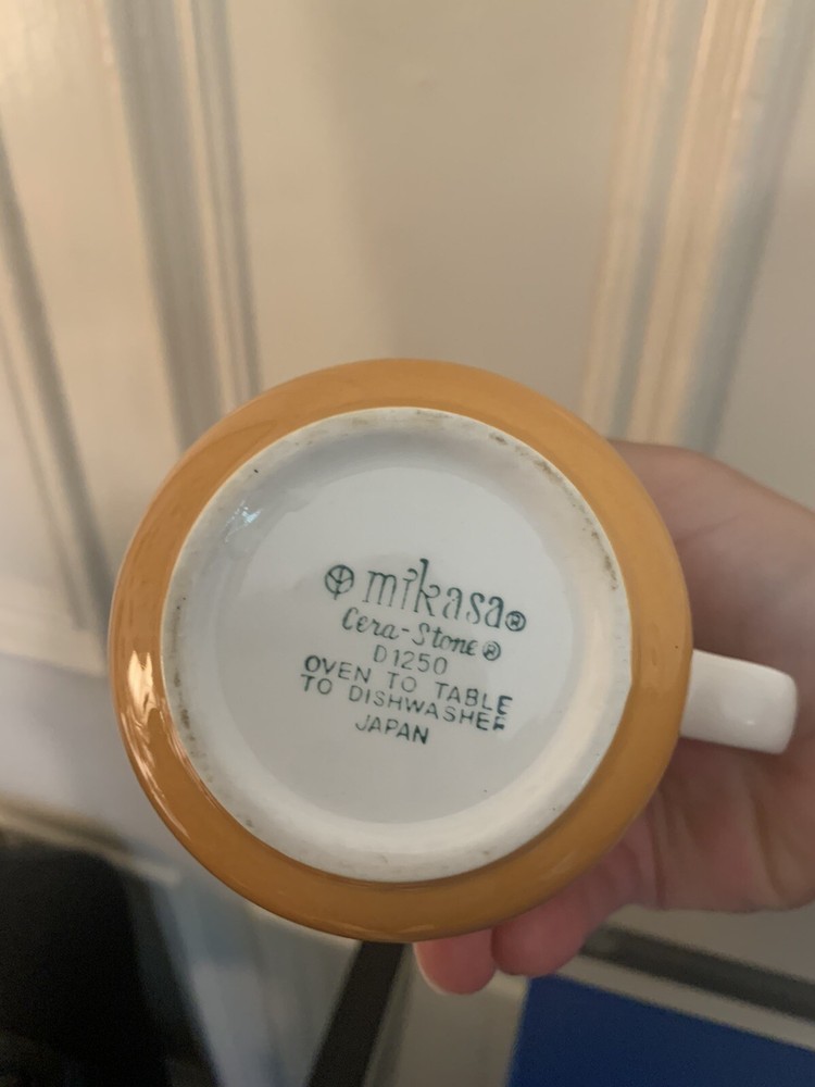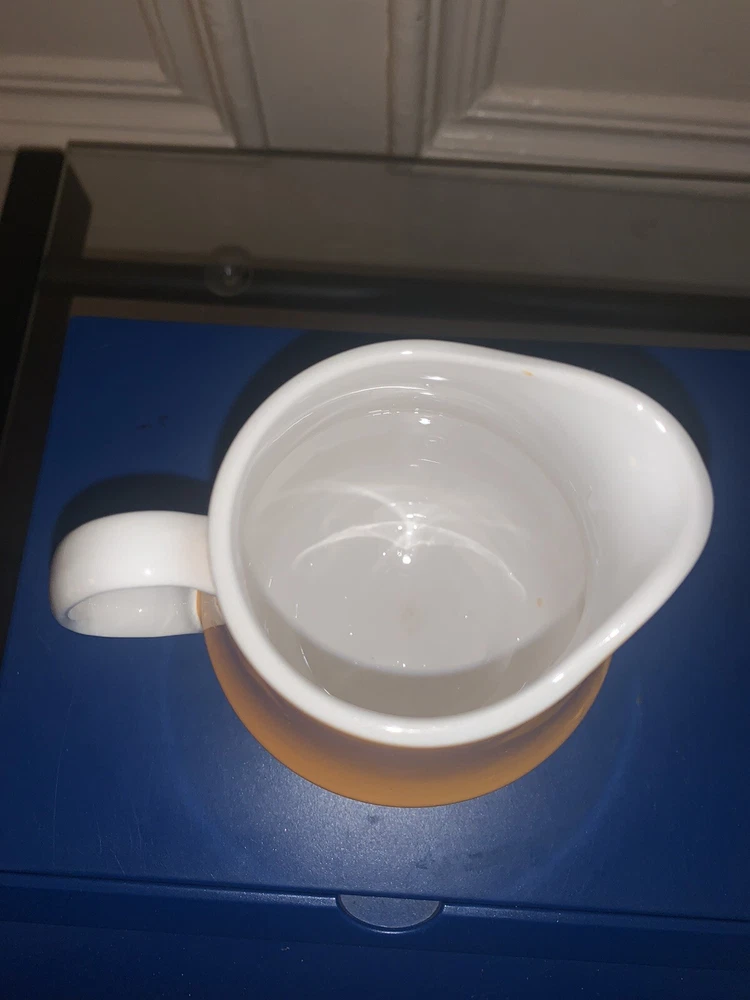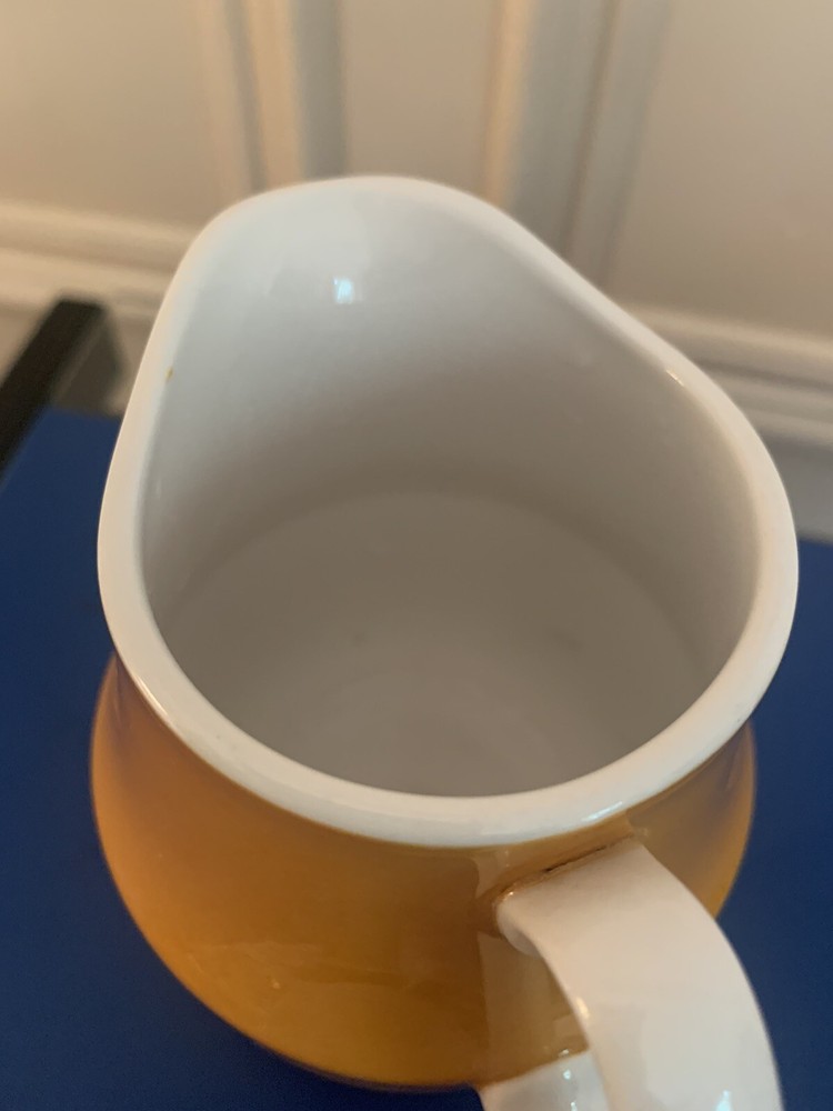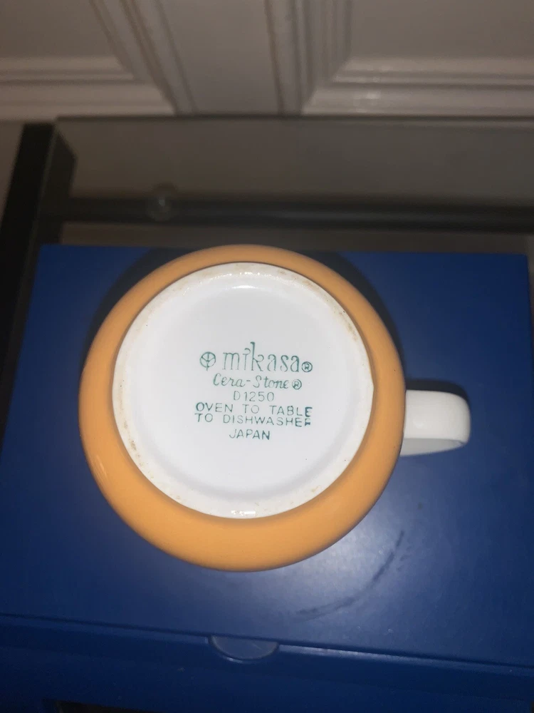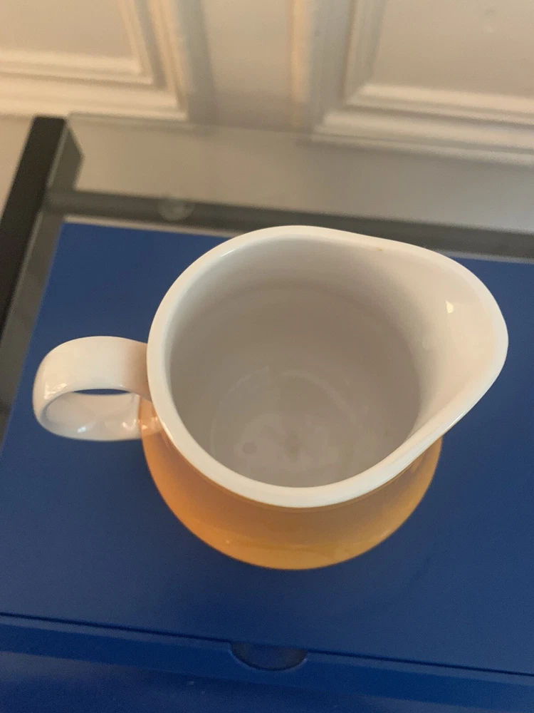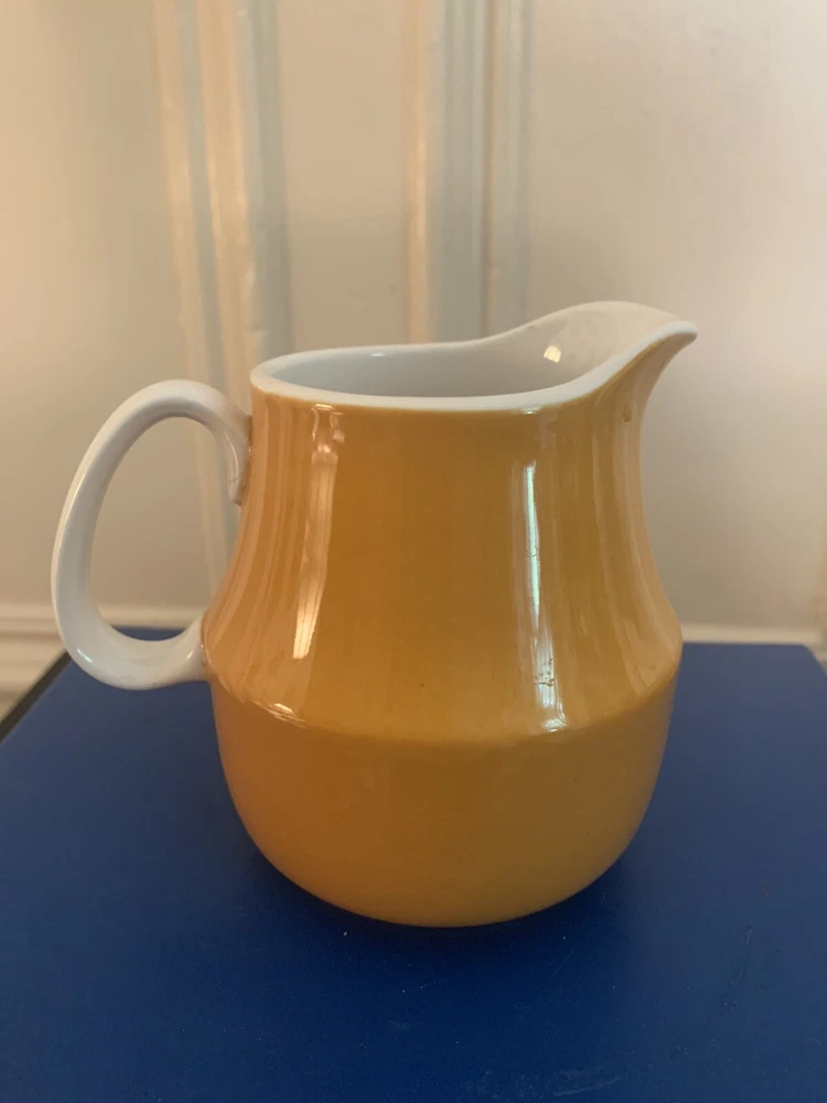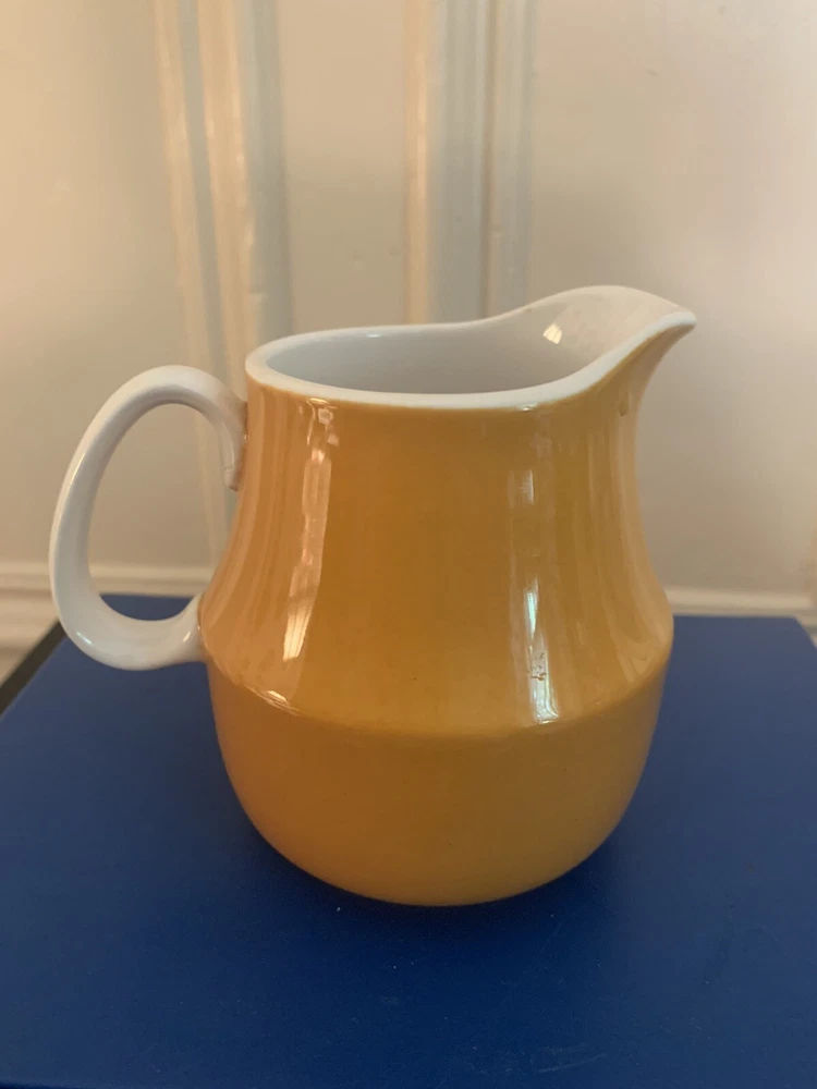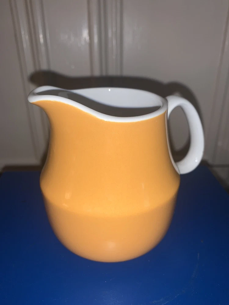 Mikasa Cera-Stone D1250 Creamer YellowOrange White Retro Vintage MCM Mid-Century. Condition is "Used". Shipped with USPS First Class.