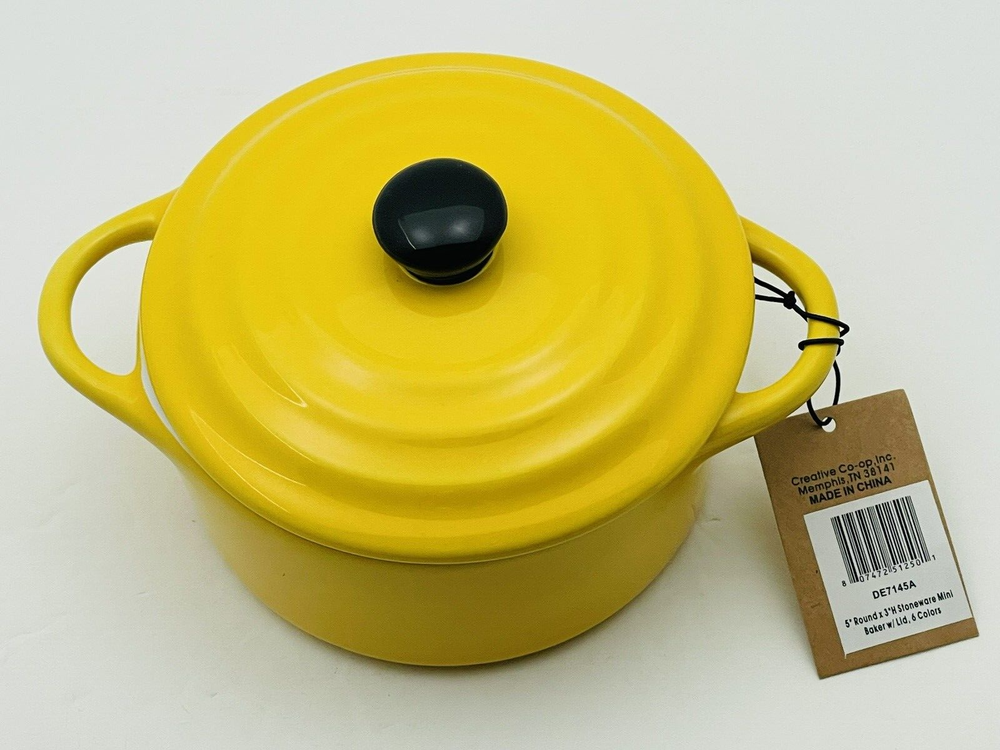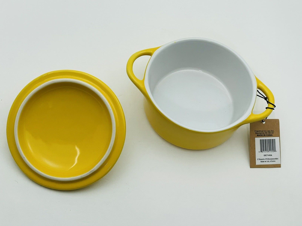 This adorable mini baker is perfect for individual servings! The cheerful yellow and white design brightens up any kitchen, and the sturdy stoneware holds heat well. The lid keeps food fresh and makes it easy to store leftovers. Great for dips, desserts, or even small casseroles—so versatile and cute!