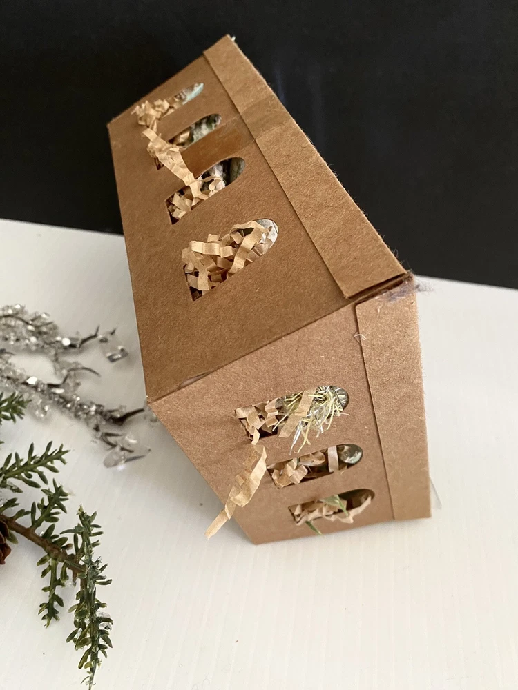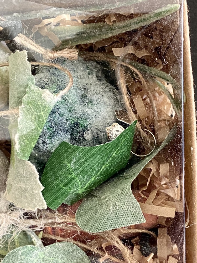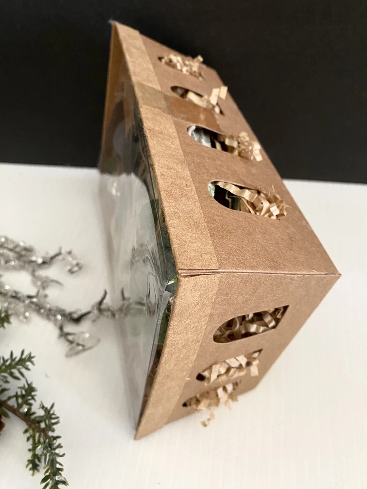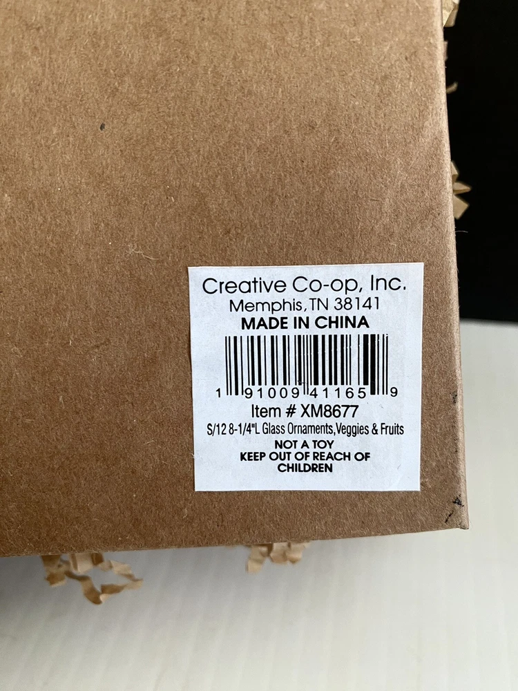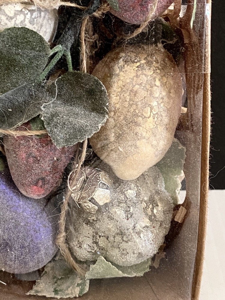 These ornaments are new in box! They are in a cardboard type crate container… one similar to what you would find fresh garden vegetables and fruits in. These are miniature.. 1-3L… and have an aged molted frosted look… brand is Creative Co-op..view photos for details. I brr we lived there are roughly 12 pieces… it’s hard to tell… Thank you for viewing! Item ships usps ground or priority. #422#840chornbox/1178/1.7