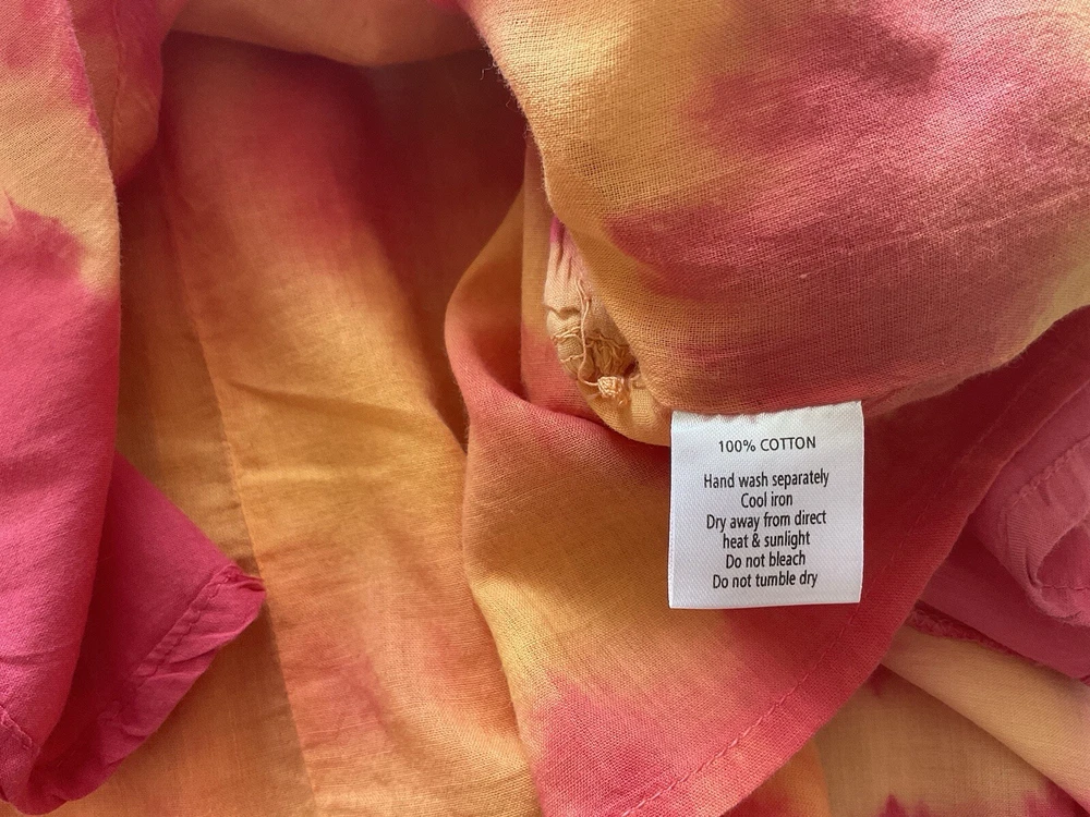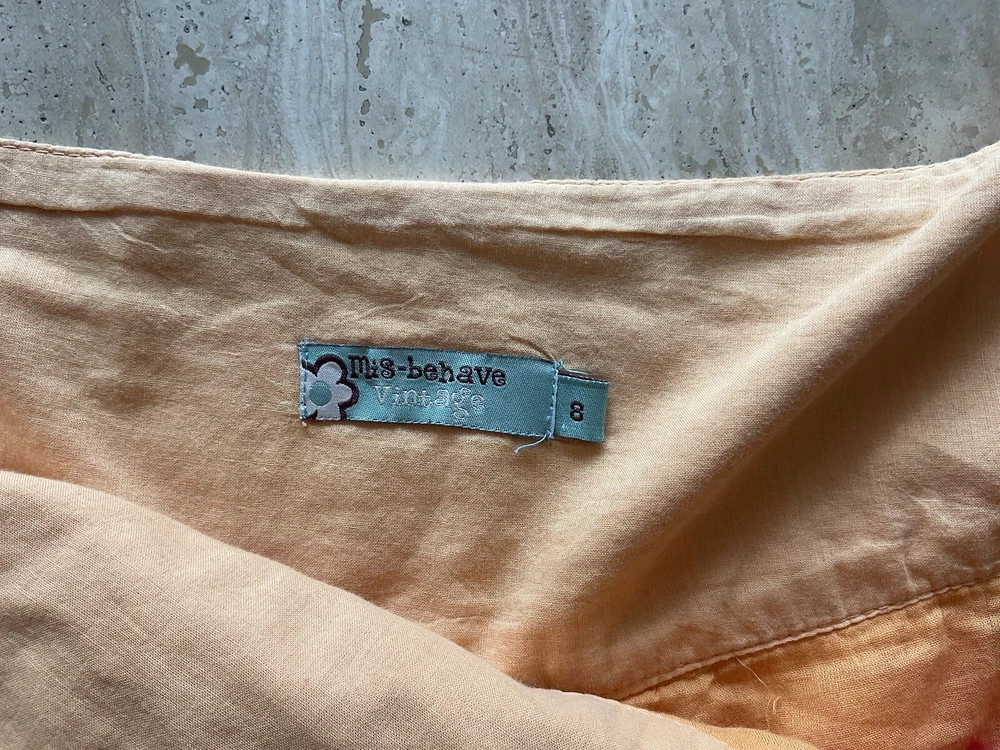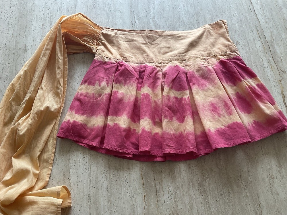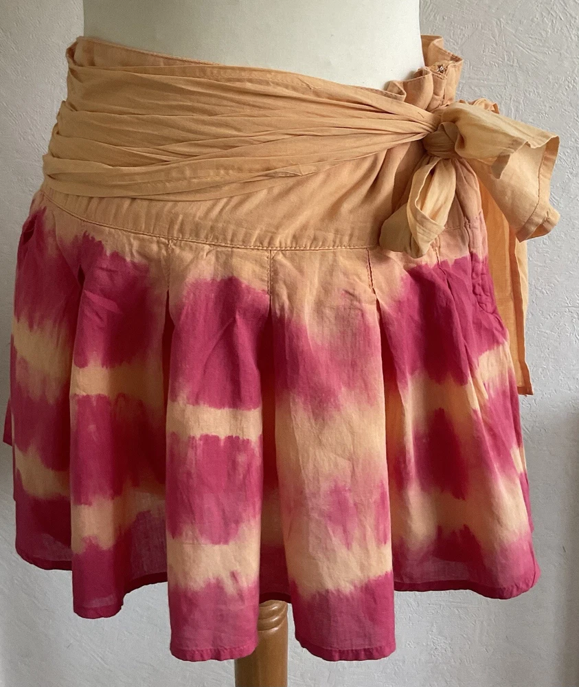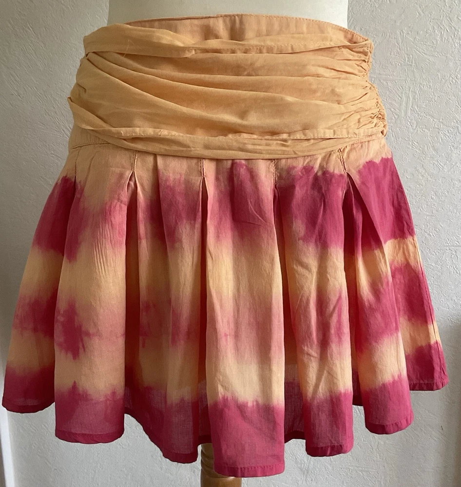 Add a pop of colour to your wardrobe with this vintage tie-dye mini skirt from Mis-behave. In a vibrant orange mix, this skirt is perfect for a casual occasion and can be worn throughout the year with its lightweight fabric and fixed belt/waist tie the skirt can be worn in a variety of ways. The skirt is made from 100% cotton and features a mid-rise waist, making it a comfortable fit for all seasons. The skirt has a side zip closure and is lined for extra comfort. Its short length and stylish design make it a great addition to any outfit. Hand wash only to keep the skirt looking its best. Perfect for a day out with friends or a night on the town, this skirt is a must-have for any fashion-forward woman. In good, clean condition. Skirt measures 38cm/15” from waist to hem.