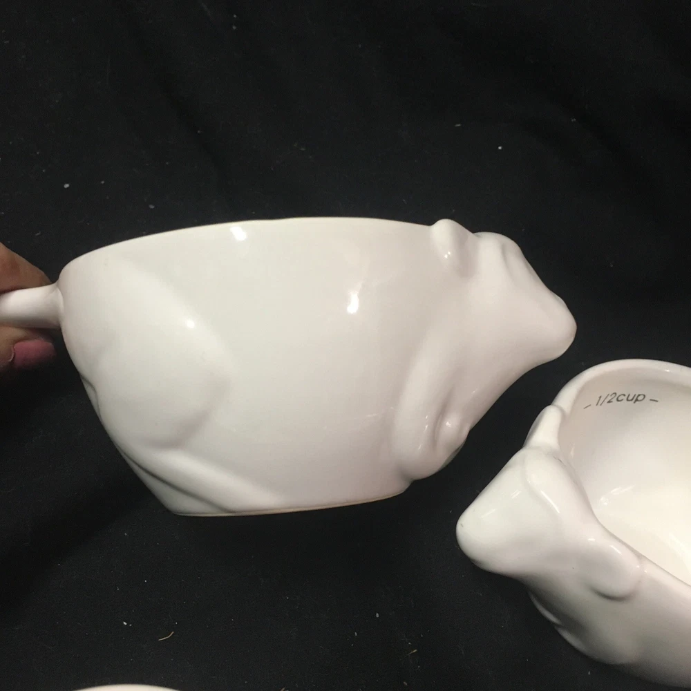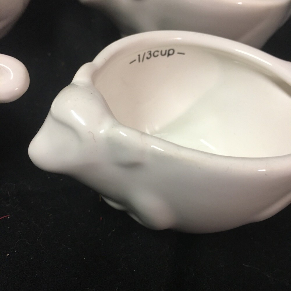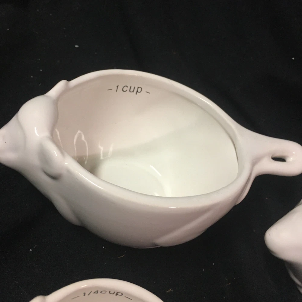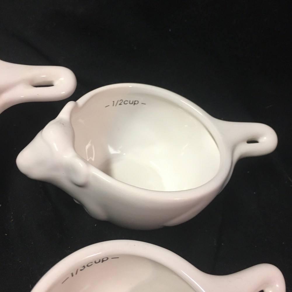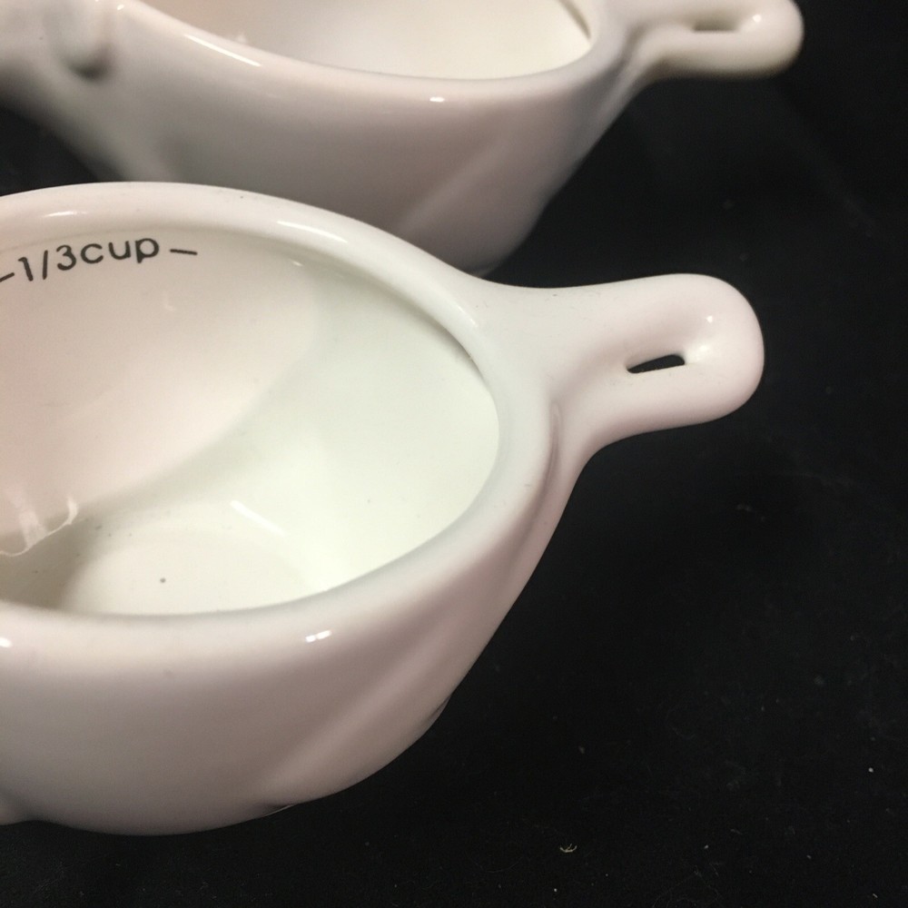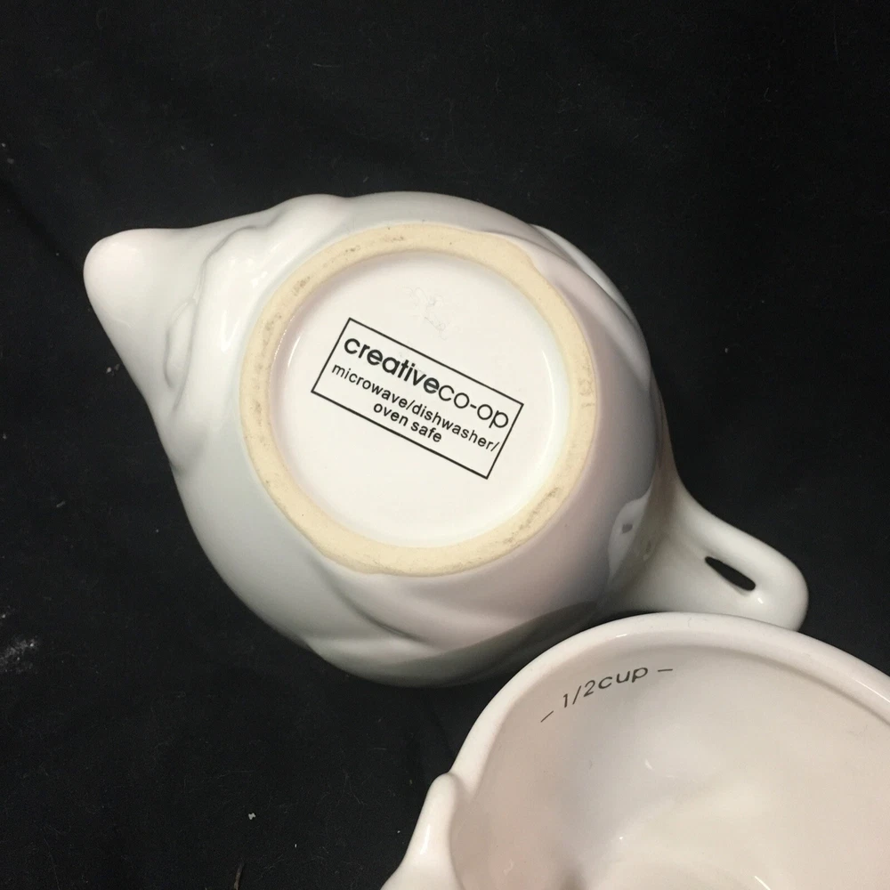 Add a touch of whimsy to your kitchen with the Creative Co-Op Monkey Nesting Measuring Cups. Crafted from high-quality ceramic, this set of four white cups features playful monkey handles that will delight both children and adults alike. The cups nestle together for convenient storage and are designed to be universally compatible with a variety of food items. Each measuring cup has a 1-cup capacity and is designed in an American style that fits seamlessly into any kitchen decor. Whether you're baking a batch of cookies or portioning out ingredients for a complex meal, these measuring cups are an essential addition to your kitchen toolkit.