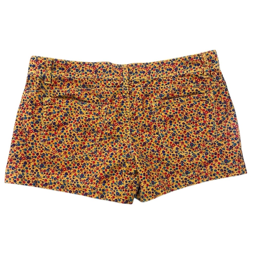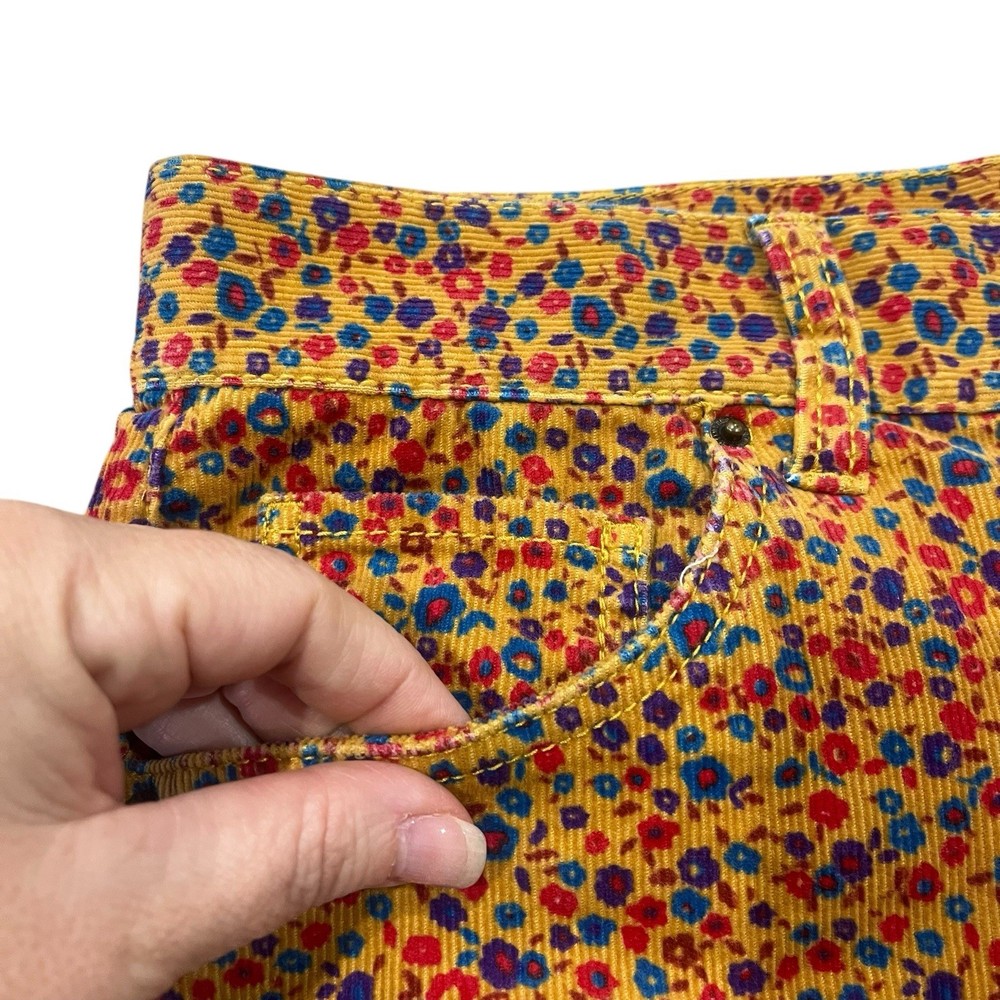 Hippie vibes with these soft brushed corduroy shorts with an allover floral print. Approximate measurements when lying flat: - 17.5” across waistband - 9” rise - 3.5” inseam...