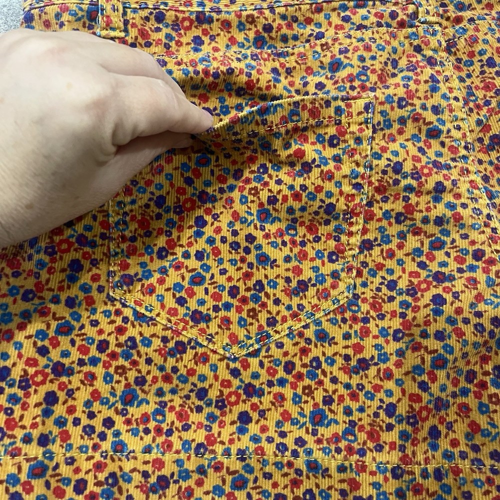 Hippie vibes with these soft brushed corduroy shorts with an allover floral print. Approximate measurements when lying flat: - 17.5” across waistband - 9” rise - 3.5” inseam