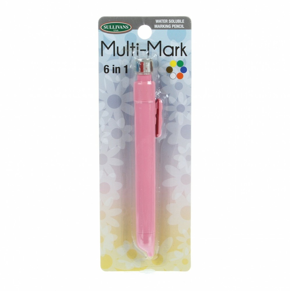 This mechanical-style pencil has 6 colors in 1, perfect for all shades of fabric. Mark your darks, light, and prints - all with one pencil. Water soluble marking pencil writes in white, yellow, red, green, blue, and brown. This handy 6 in 1 tool is a must-have for marking all of your sewing and crafting projects. Easy to use! Simply rotate the color dial and drag the slider down to use the selected color. Lead can be sharpened with a nail file. You can easily remove the markings from fabric with water, a damp cloth, or a sponge before pressing. Color: Pink Use: Marking Size: 5.75in long and 1/2in diameter.