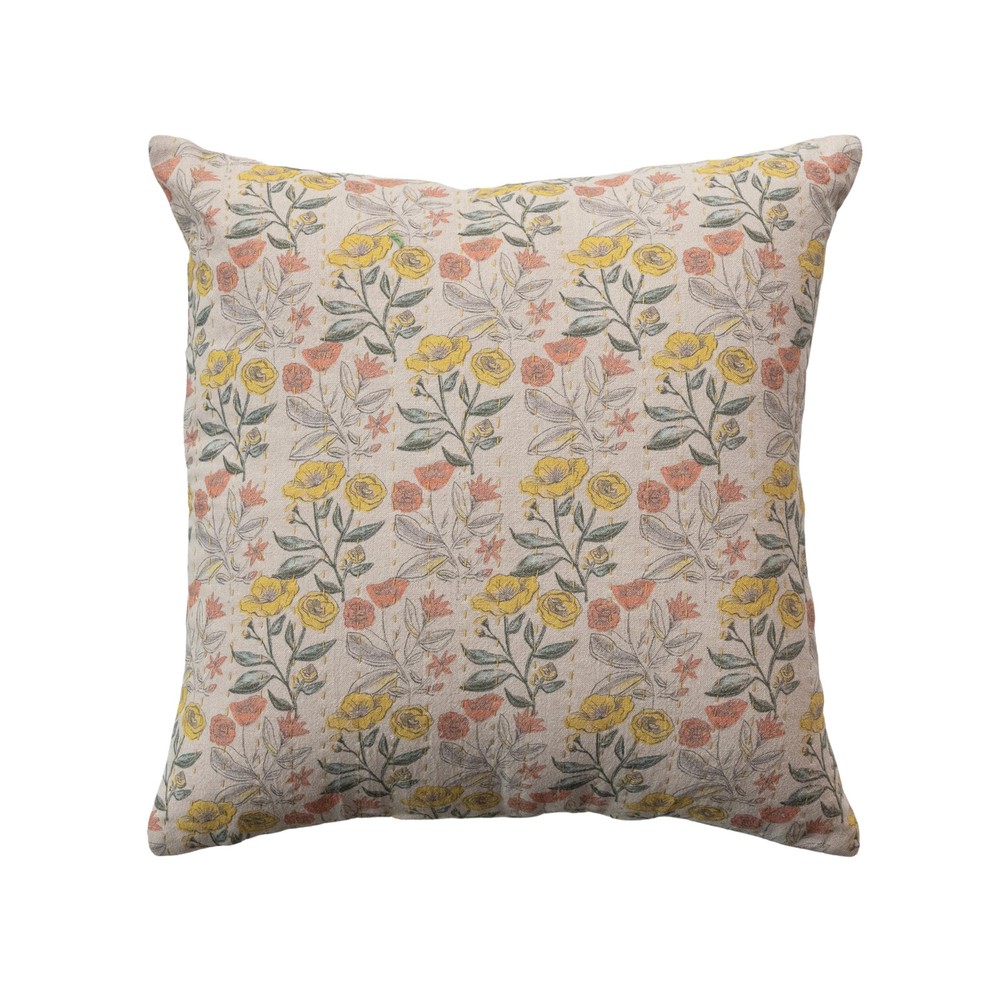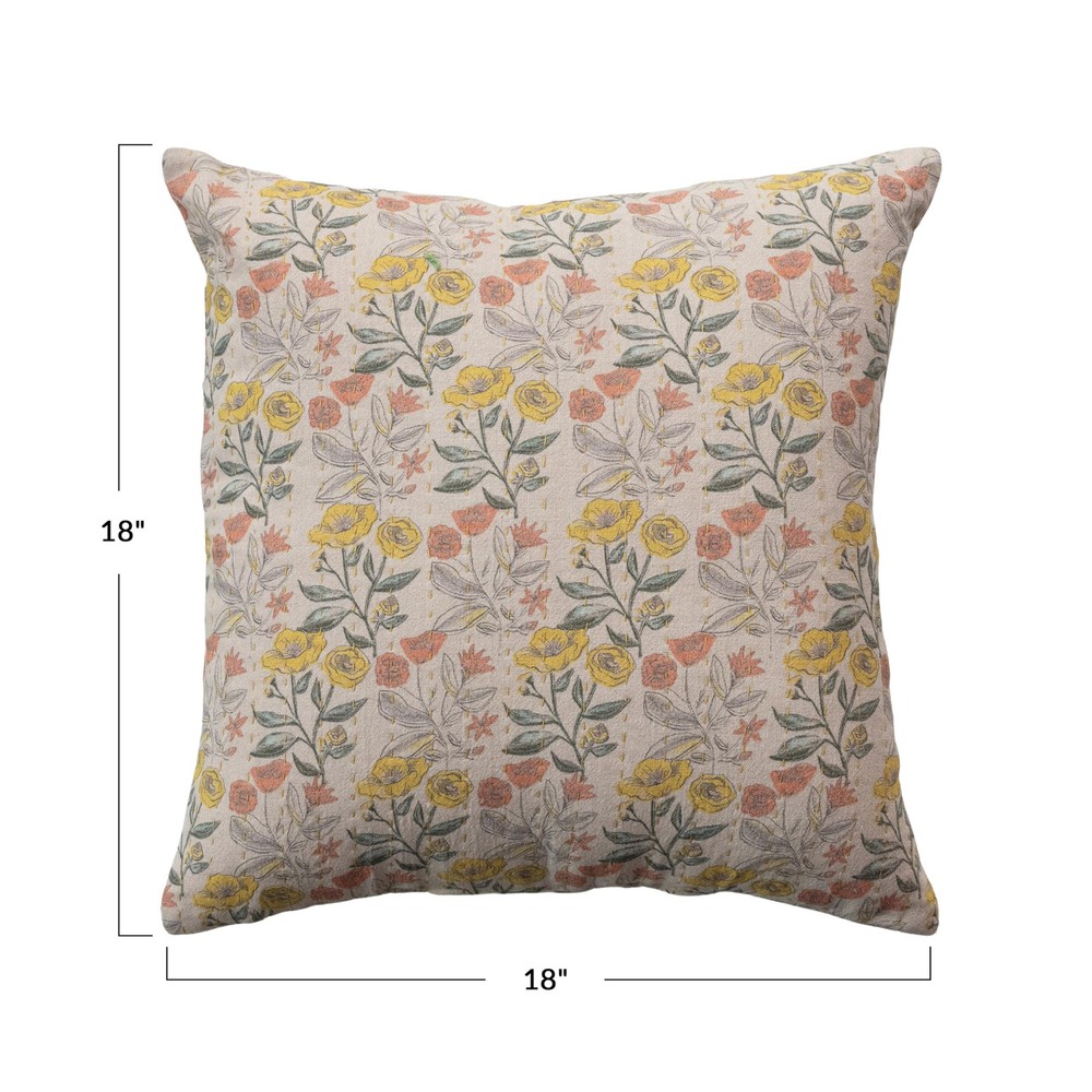 This Cotton Chambray Floral Printed Pillow is a celebration of classic style and comfort. The multi-colored floral pattern blooms across the chambray fabric, creating a lively and inviting presence. Measuring 18 inches square, it's the perfect size for curling up on a cozy sofa or adding a decorative touch to a bed. The pillow's transitional appeal bridges the gap between traditional charm and contemporary chic, making it a versatile choice for any home seeking a hint of rustic elegance. The pillow's soft texture and plush filling ensure both style and comfort, making it a delightful addition to any living space. Its timeless design and high-quality construction long-lasting beauty and enjoyment. A vibrant cotton chambray pillow adorned with a charming floral print, bringing a touch of nature indoors An elegant piece that beautifully complements transitional, vintage, and rustic decor styles Polyester fill insert included Crafted from high-quality cotton, this pillow is soft to the touch yet durable for long-lasting enjoyment 18” L x 18” W