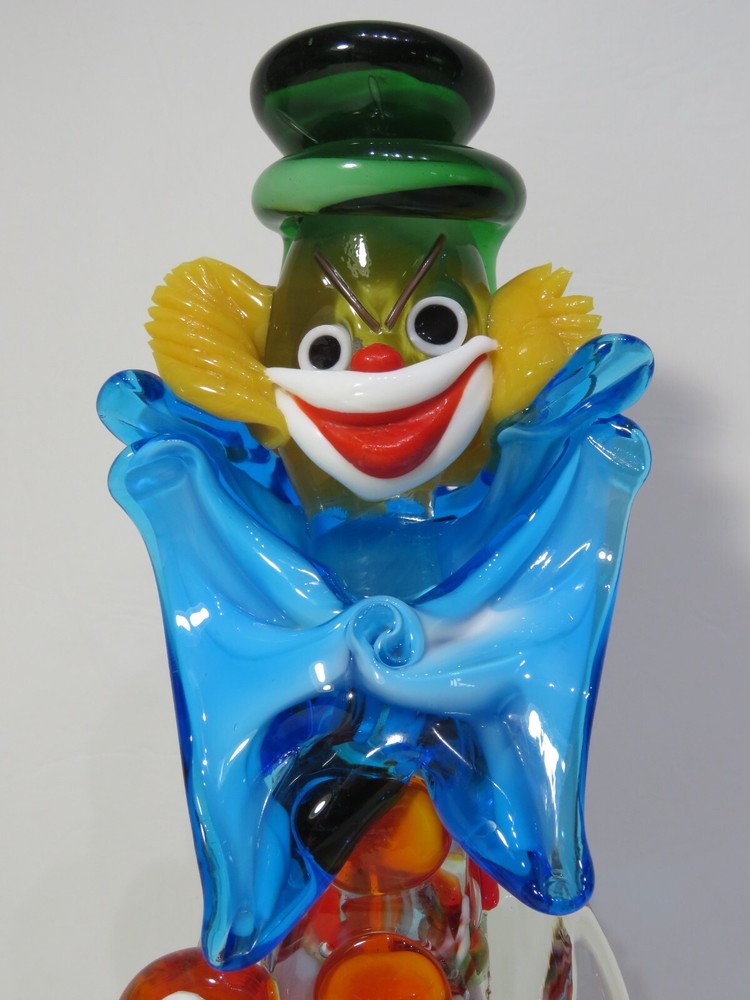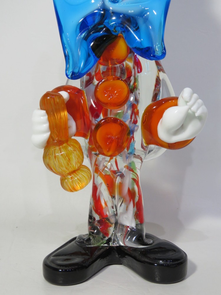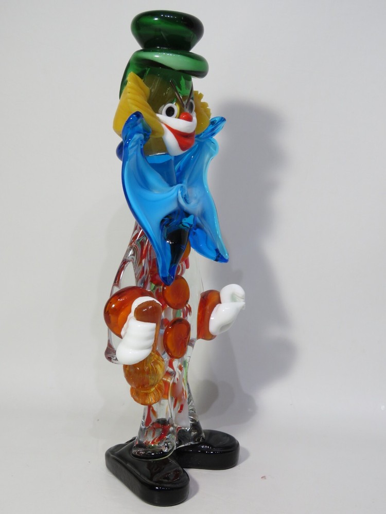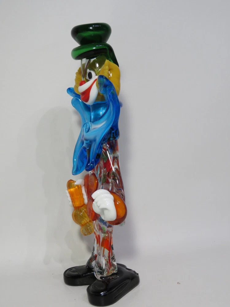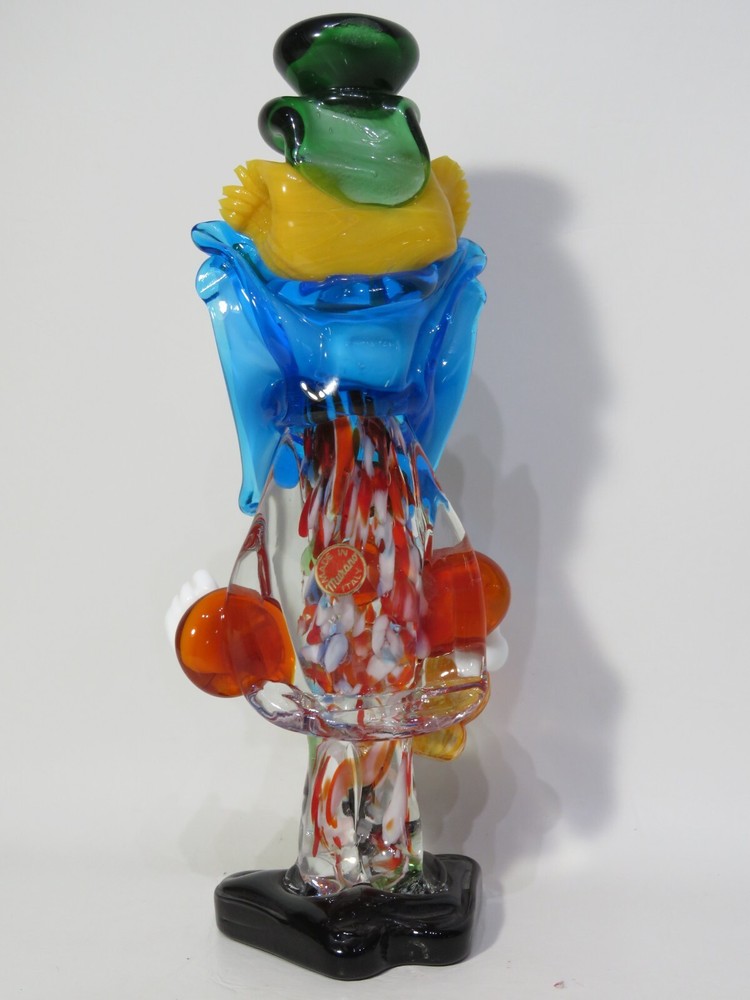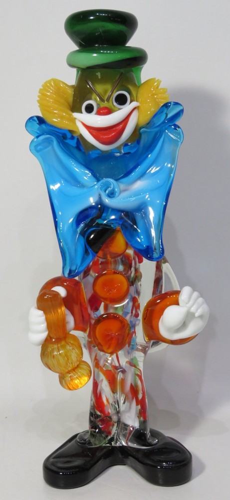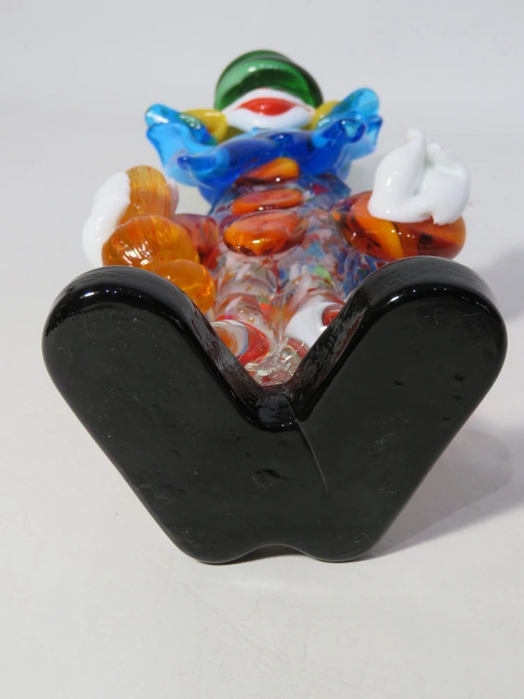 INTERESTING INFORMATION : I offer several shipping services. Make sure to choose the one that is the best rate for your location. ITEM DESCRIPTION: To see other Murano pieces please click this Link . Whimsical clown from Murano mid-century collection. The clown stands 11.5" to the tip of his green hat with a width spread of 4.5". His outfit is Murano orange and white with blue collar and bowtie. Big red lips a shock of yellow hair under his green top-hat. He's holding an orange flask and has large orange buttons and orange cuffs with large black shiny shoes. No breaks or other flaws on this timeless piece. This 11.5" clown weighs in at 2.10 pounds. Again, please scroll over the item with the zoom feature to see detail. FINE PRINT ABOUT US We find the treasures you've been looking for! I treat all of my customers with the greatest courtesy. If you feel there is a problem please write. Hard to believe I know, but, I have made mistakes ~ and I'm pretty sure I haven't made my last one. The good news is that I always set my mistakes to right if given the chance. TERMS OF SALE Please look your item over carefully before you purchase (use the magnifier). I try very hard to take representative pictures and give details about the product so that you know what you are purchasing. If my detail doesn't answer your question please write. Thank you in advance. FINAL DETAILS If you purchase multiple items don't pay until I package them and invoice you. Please note that any photos in my listings are the real item. I don't use stock photos. Ask questions if I have not been clear in my listing before you bid. Enjoy shopping. Support your local merchant ~ and your friendly eBay seller. Visit my store when you get a chance. I carry a wide variety of interesting , useful, unique, and unusual items. This is a great place for gift shopping . I am always happy to combine shipping costs. PAYMENT Please make payment within 3 days of purchase. If you need more time please write. If you change your mind please write. SHIPPING PLEASE NOTE: Books, tapes, DVDs all ship by Media ail . It's not the quickest but it will save you lots of money. If you need something quicker just let me know and I will let you know the new shipping charges and re-invoice you for the difference. PACKAGING: I use used boxes and fluff. I do this because I care about the planet and all who live here and my future generations . Just thought you should know. SHIPPING COSTS: I charge actual shipping to your location . SHIPPING TIME: I usually ship the same or next day after your purchase depending on whether my mail has already been picked up . If you purchase on a Friday after mail time I may not be able to ship until the following Monday. TIMELINE: When I ship you will receive a letter from PayPal with your tracking information. There is a link on eBay so you can check the progress of your package.