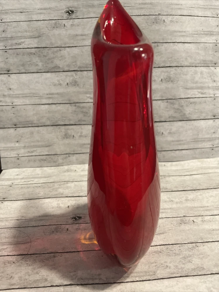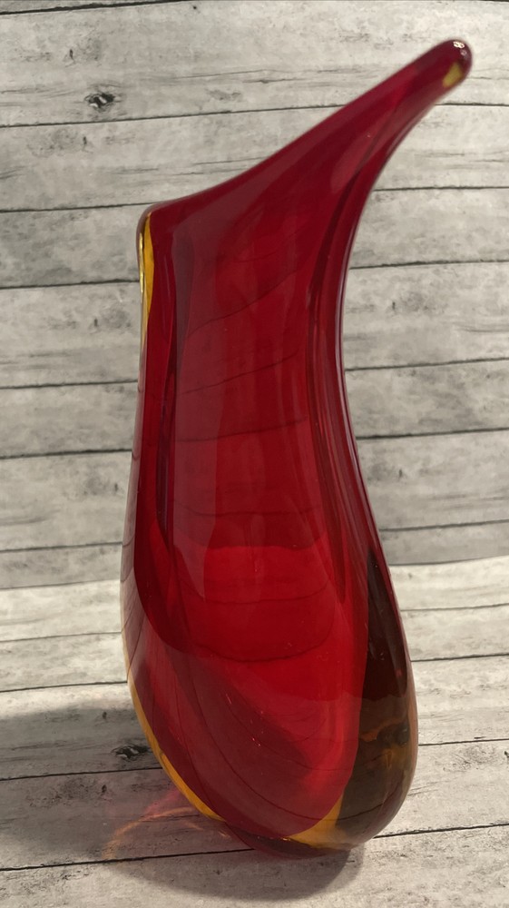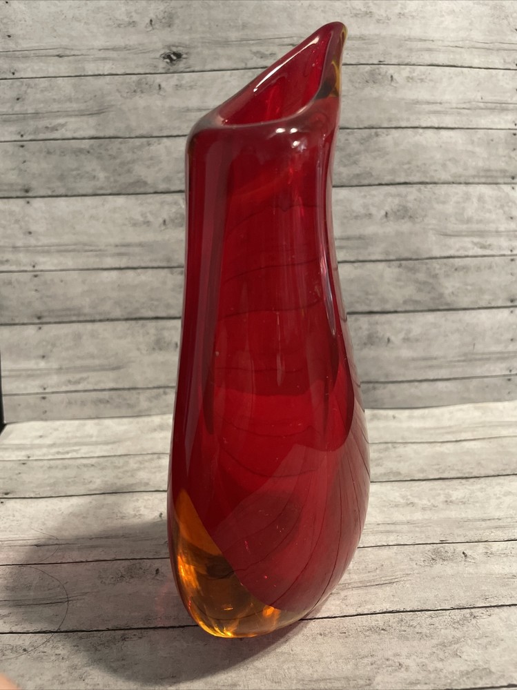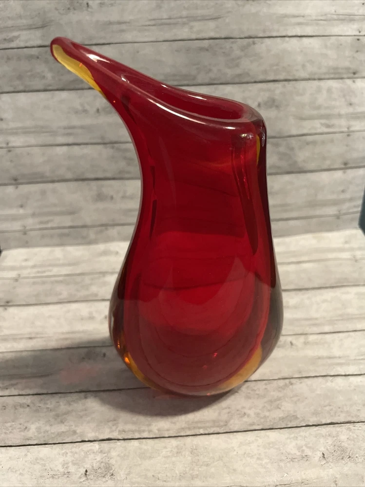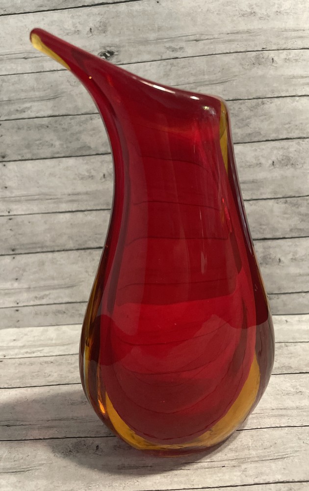 Murano Glass Vase Vintage Amber Sommerso Red 6.5” Mid-Century Red Orange....