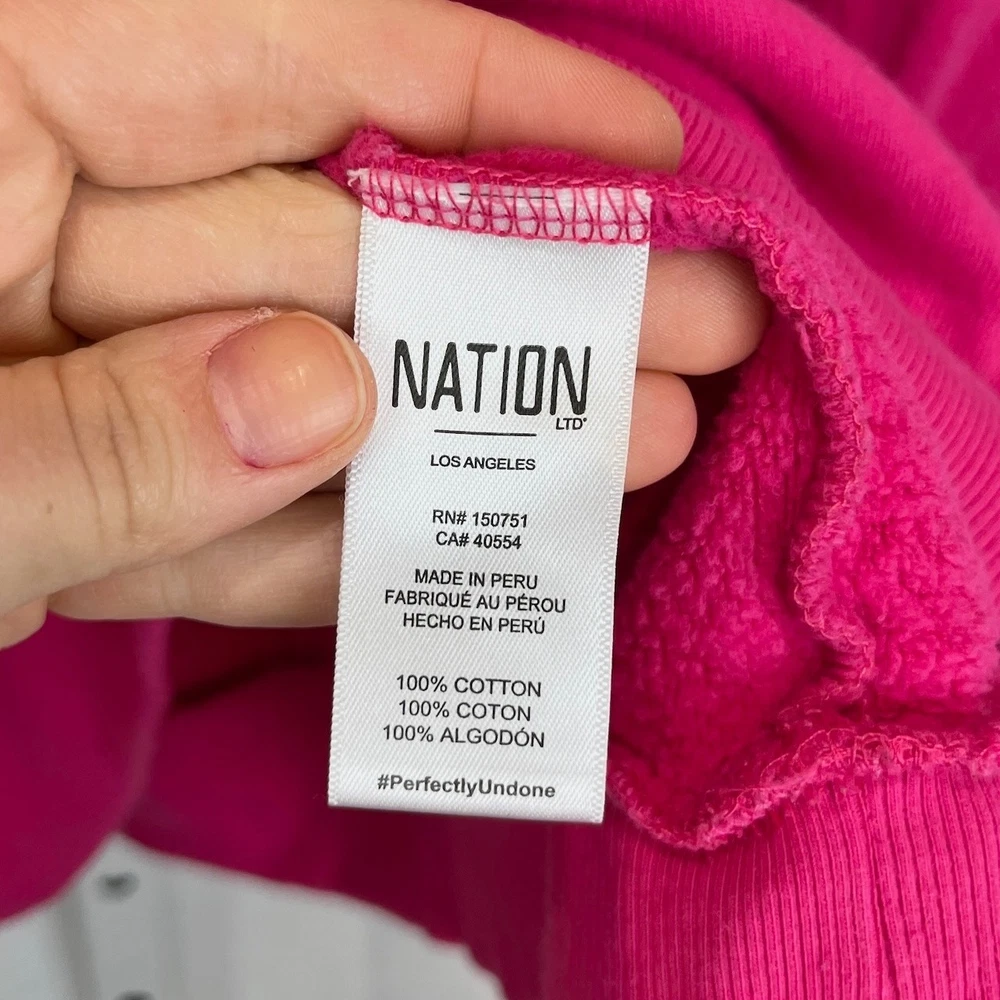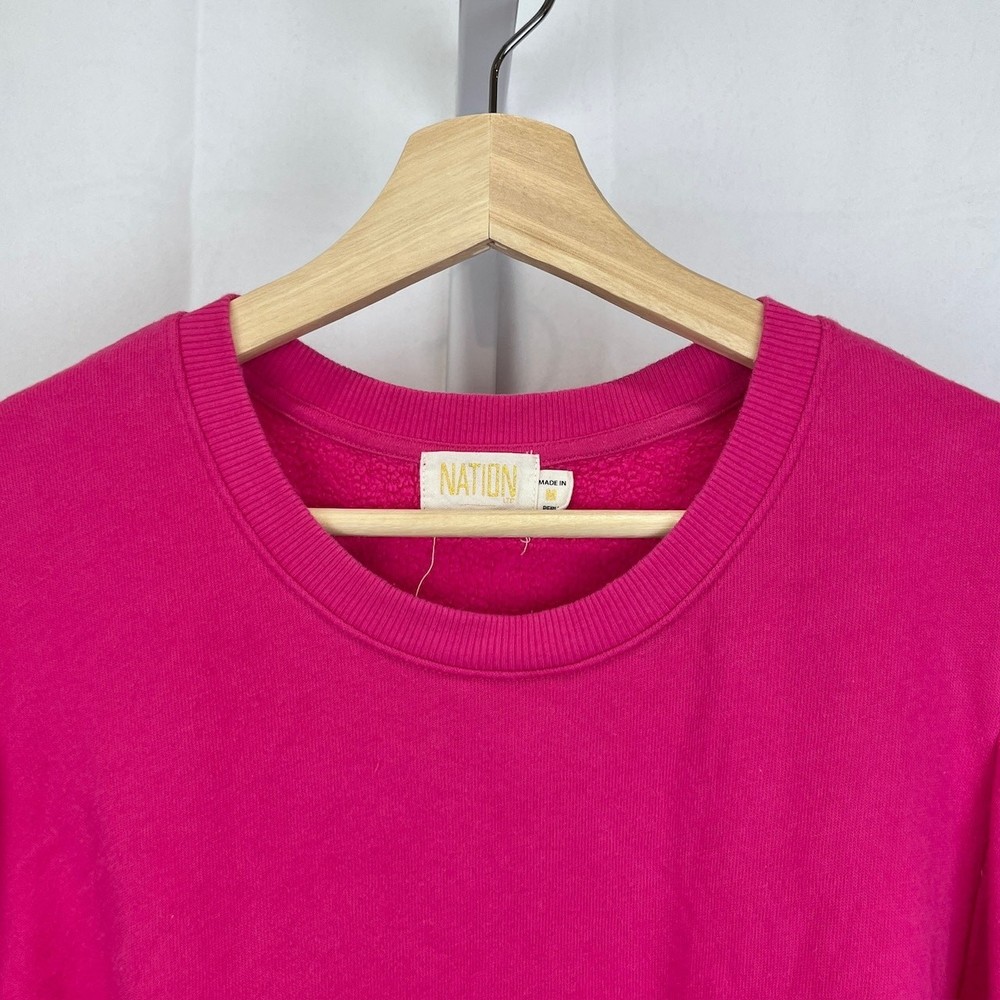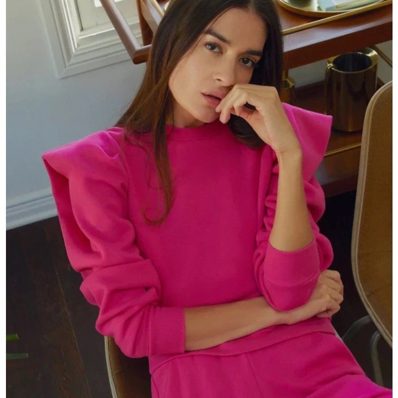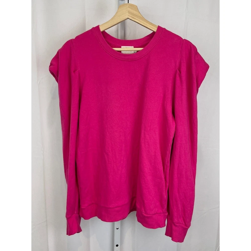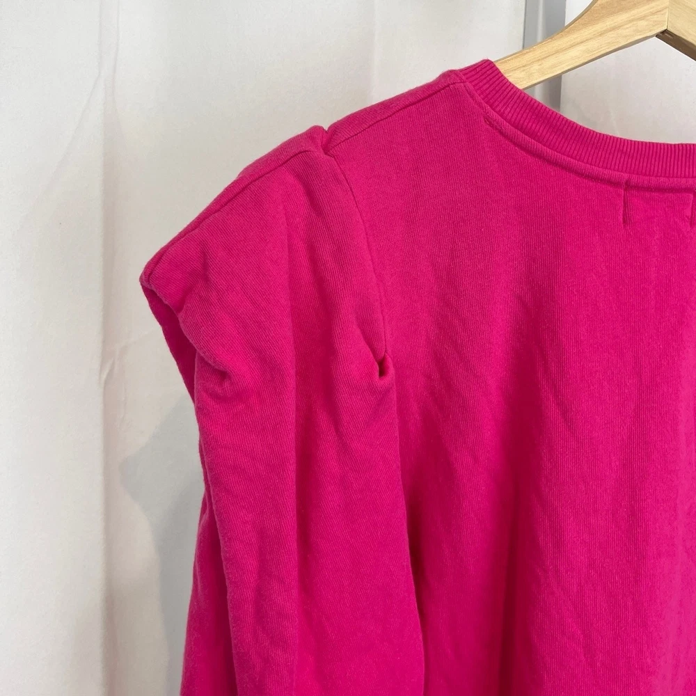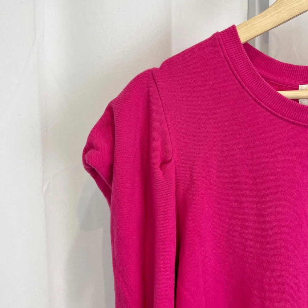 <![CDATA[<div>Joss Sweatshirt with Draped Sleeves in Barbie. Style 1236FL. Crew neck, origami folded shoulder, long sleeve, pullover style. Cozy 100% cotton fleece in bright Barbie pink. Womens M. Terrific preowned condition. Chest flat across: 18.5" Back length: 24"