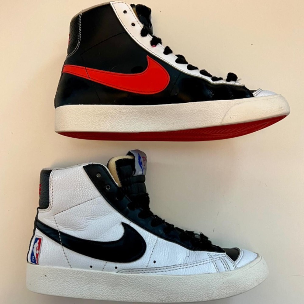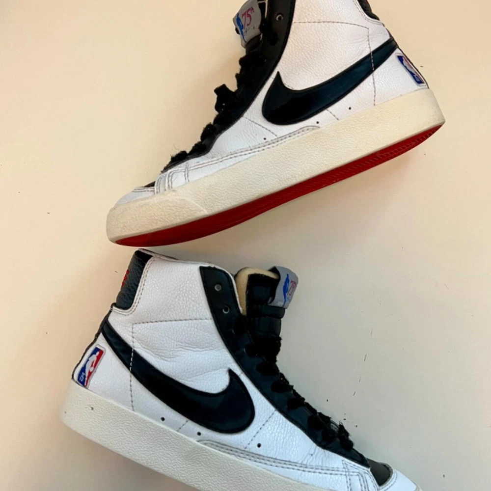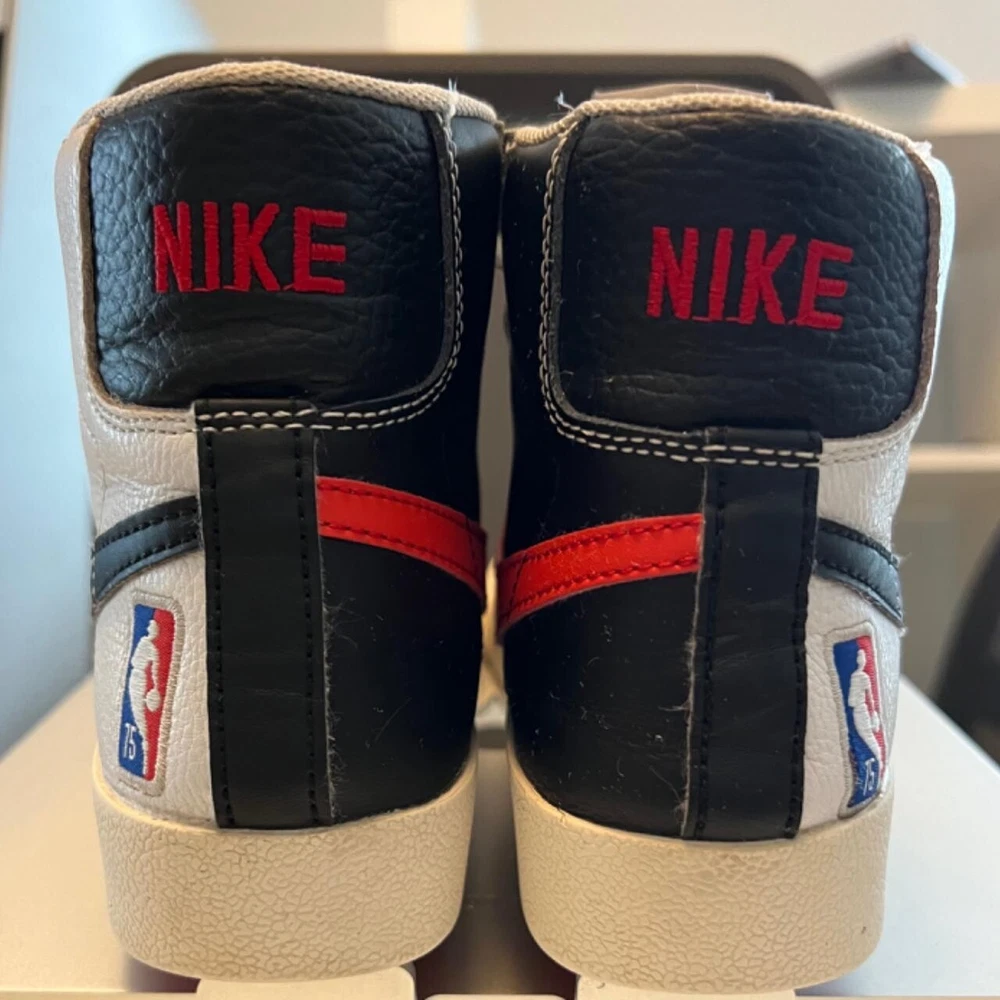 Color Sail/Chile Red/Sail/Black Size 6.5 Leather Upper Rubber Sole The retro silhouette is dressed in the signature colors of the shoe’s namesake team, the Portland Trail Blazers, and features a leather upper in mismatched color blocking. The lateral side combines a white base with contrasting black accents on the eyestay and Swoosh, while the medial side is rendered in black with a white eyestay and crimson Swoosh. The NBA’s iconic logo, highlighted by Jerry West’s silhouette with 75th anniversary branding, adorns the lateral heel and a woven tag atop the exposed foam tongue. **Pre-owned with no visible snags, stains or holes**