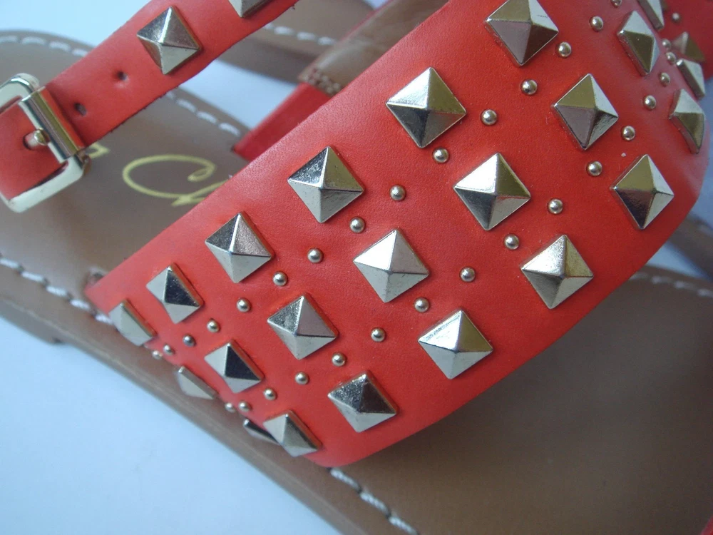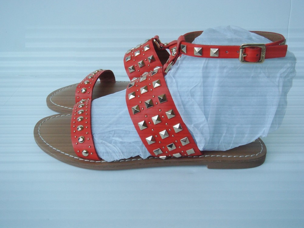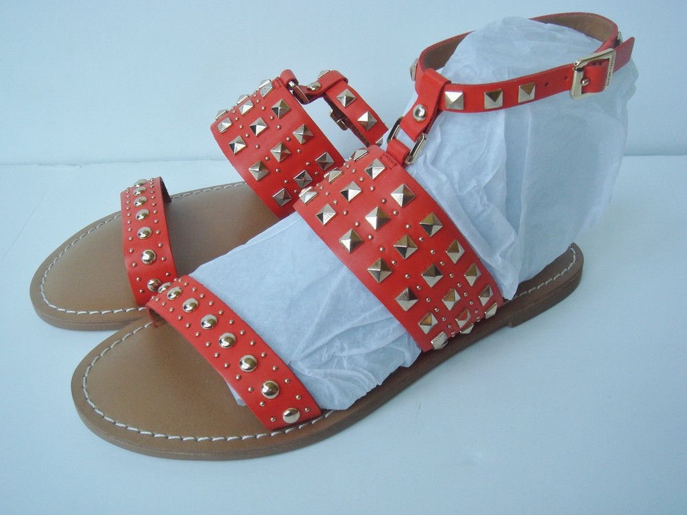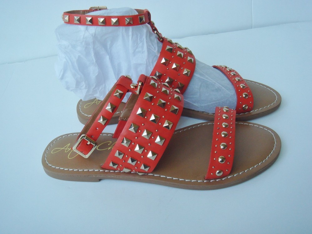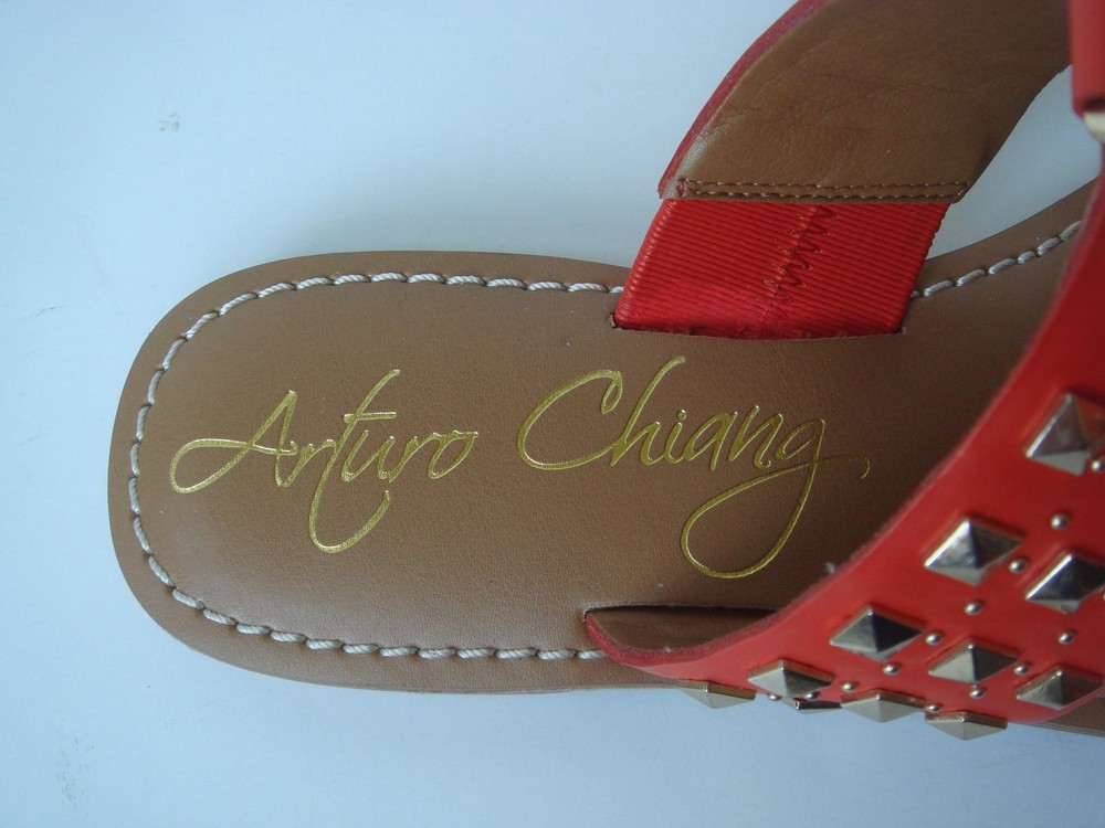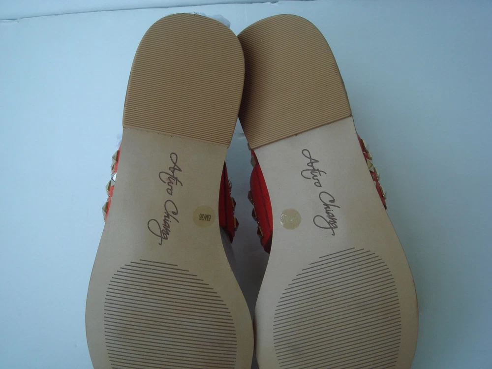 Brand New super cute Arturo Chiang Sandals "AT-Teresse" Orange leather uppers - "Summer Tangerine" with gold studs ankle strap buckle closure Sz 6M Please pay within 3 days of end of auction Thanks for looking and Good Luck!