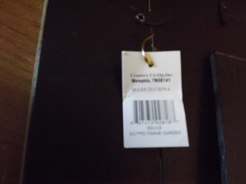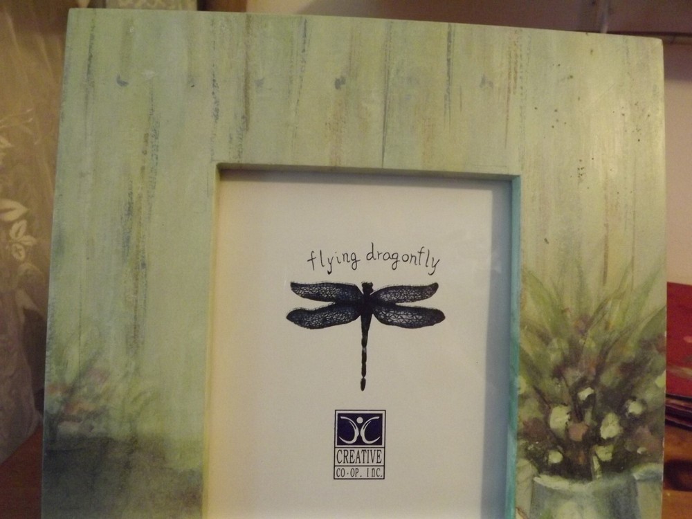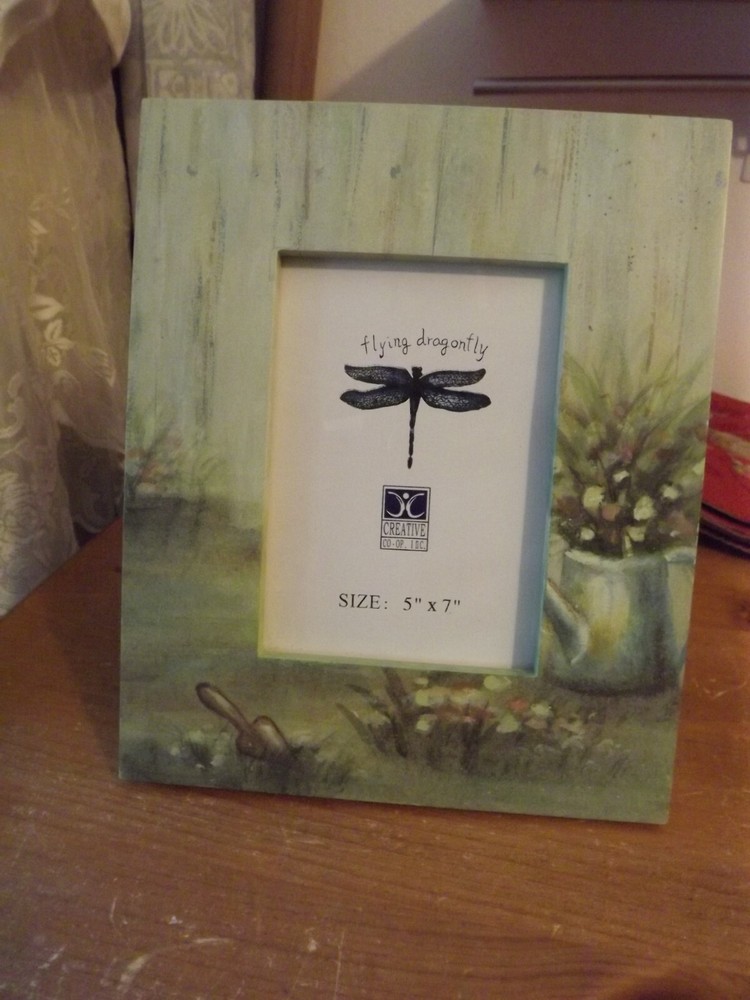 BRAND NEW GARDEN PICTURE FRAME by CREATIVE CO-OP - FEELS WOOD (possibly compressed) - MEASURES 9.25" X 11.25" AND HOLDS A 5X7 INCH PHOTO - GLASS INSERT - THE GARDEN THEME IS LOVELY WITH MOSTLY GREENS / SOME PINKS IN THE FLOWERS AND A BLUE WATERING CAN / A BROWNISH SHOVEL IN THE DIRT - HAS A BACK EASEL - NEW AND UNUSED