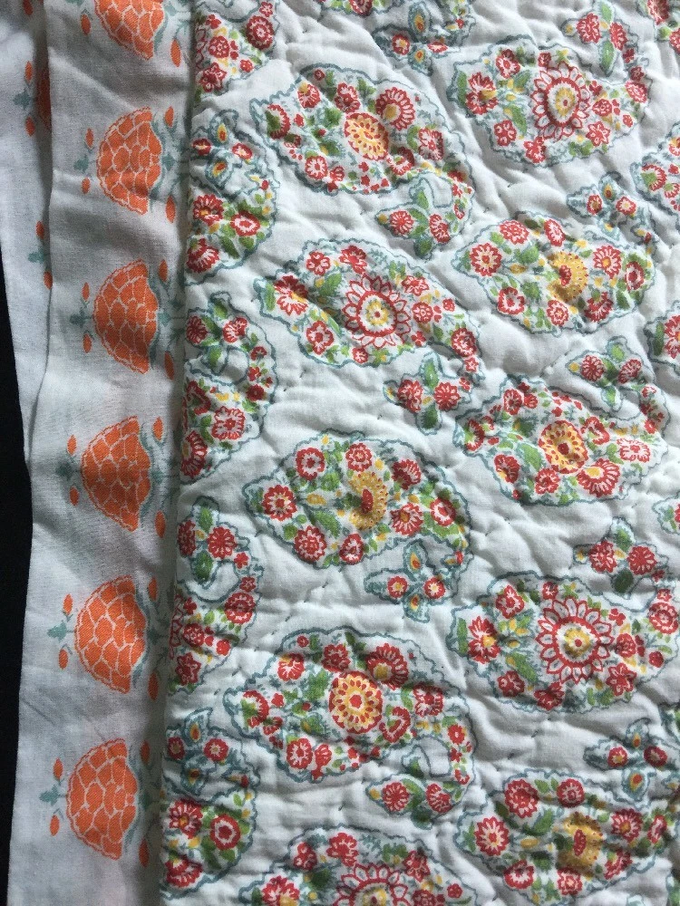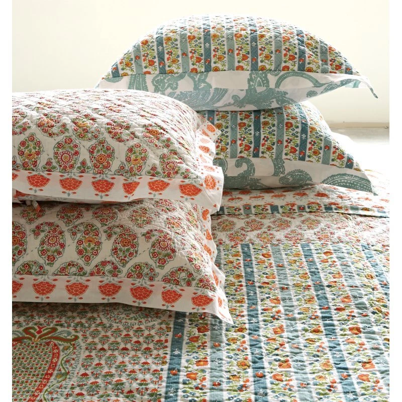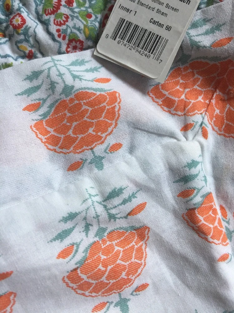 Creative Co-Op Bungalow Lane Screen Printed Standard Cotton Pillow Sham, Paisley Pattern Listing is for 2 Cotton standard size Bungalow Lane Pillow Sham features multi colored floral paisley pattern on white background with lightly quilted top. GORGEOUS !!! Very French Country, Mediterranean Seaside, Bohemian, Globe Trotter, Shabby Chic, Hippie Chic, Botanical Garden Vintage Details • 100% Cotton paisley Sham • Colors: orange, blue, yellow, red, green • Lightly quilted top with cotton fill • Machine wash cold, tumble dry low • Made in India • Tie back • 26'' H x 20'' W • 2 standard pillow Shams / set of 2 See photos ......Love the beautiful border with delicate orange print trim. Warm color palette I also have the EURO shams listed as well .....they read more cool .....blue/teal/aqua ( in main photo as well )