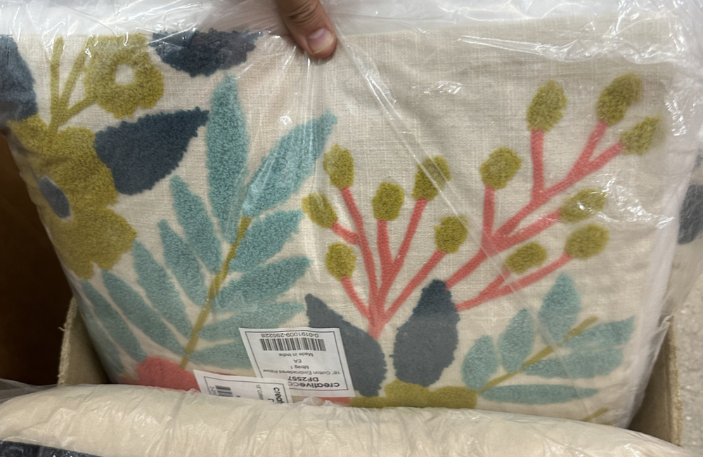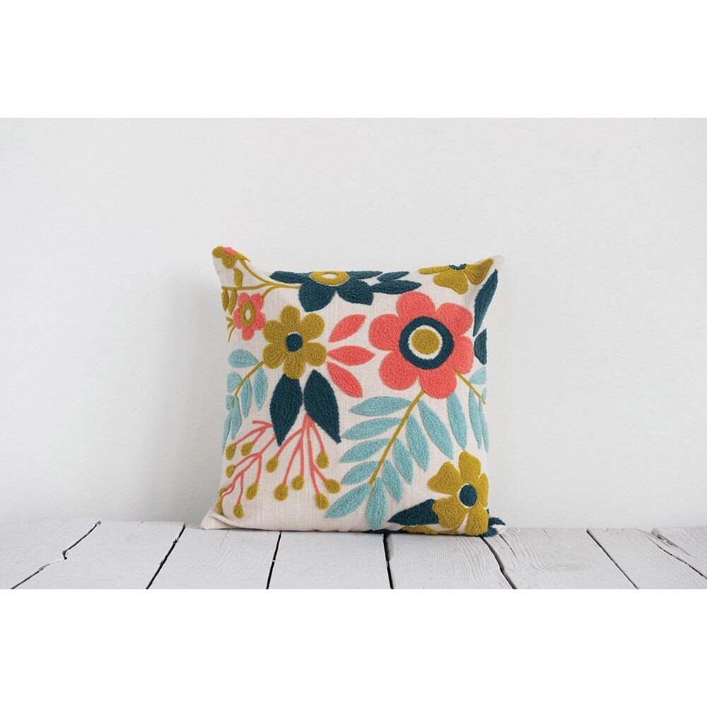 Store closing sale - everything must go! All sales final! Happy to combine shipping - check out our other listings here: https://www.ebay.com/sch/i.html?item=116281328699&rt=nc&_trksid=p4429486.m3561.l170197&_ssn=fashionista_kstani NWT 18" Square Woven Cotton Floral Pillow with Embroidery, Multi-Color from Creative Co-op (Item #DF2557). Items are in original plastic packaging and will expand when opened Retails for $52