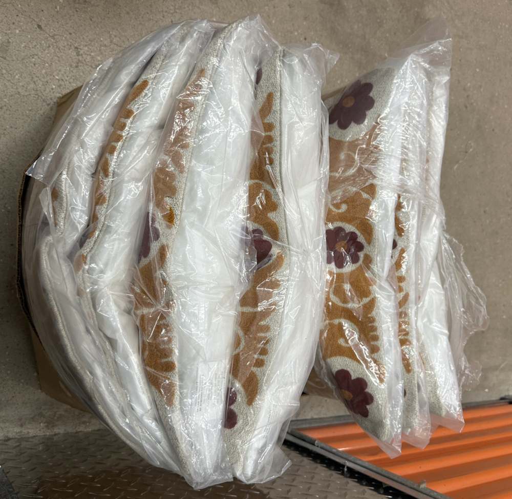 Store closing sale - everything must go! All sales final! Happy to combine shipping - check out our other listings here: https://www.ebay.com/sch/i.html?item=116281328699&rt=nc&_trksid=p4429486.m3561.l170197&_ssn=fashionista_kstani NWT 20" Square Suzani Embroidered Pillow, Sienna & Curry Color from Creative Co-op (Item #DF2343). Items are in original plastic packaging and will expand when opened Retails for $60