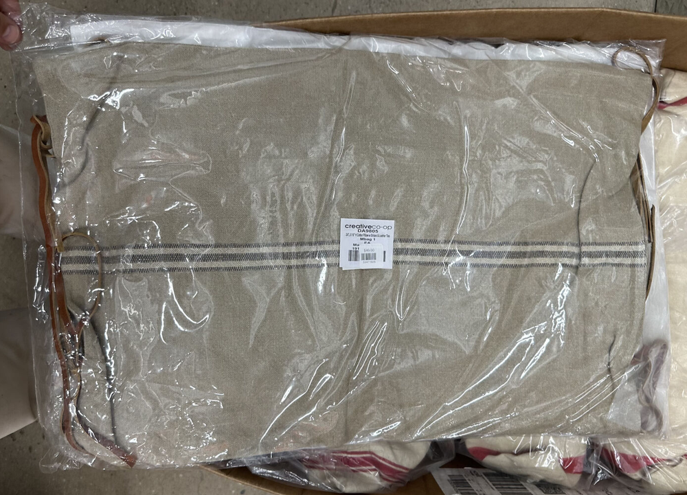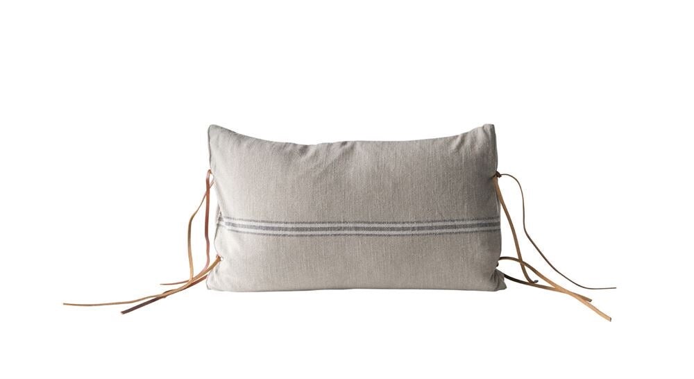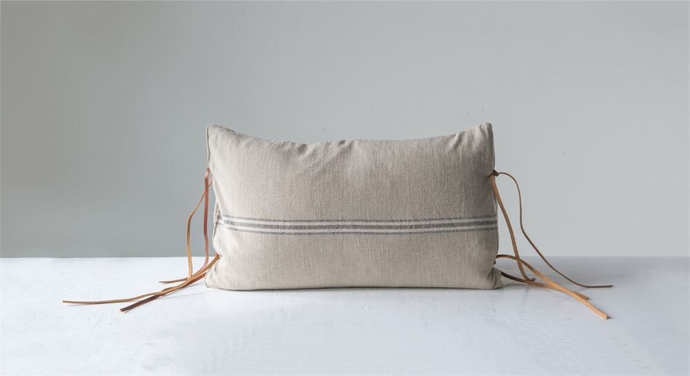 Store closing sale - everything must go! All sales final! Happy to combine shipping - check out our other listings here: https://www.ebay.com/sch/i.html?item=116281328699&rt=nc&_trksid=p4429486.m3561.l170197&_ssn=fashionista_kstani NWT 24" x 16" Cotton Pillow with Stripes & Leather Ties (Item #DA9805). Item is in original plastic packaging and will expand when opened Retails for $49