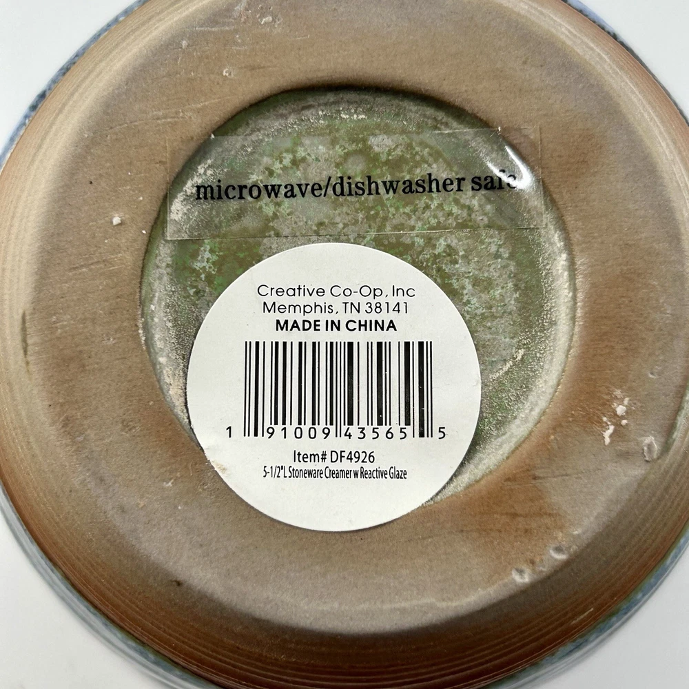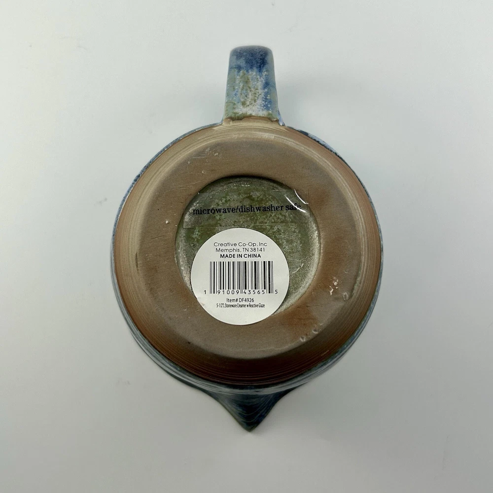 NEW Creative Co-op Stoneware Creamer Blue Green With Handle Reactive Glaze...