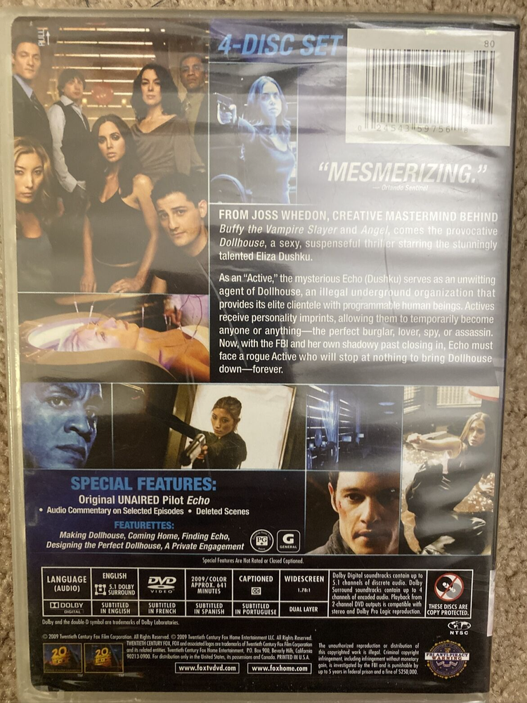 Dollhouse Season 1 (DVD, 2009, 4-Disc Set) Eliza Dushku Joss Whedon Joss Whedon's Dollhouse Season One DVD Brand New Sealed. Please see pics. I ship out Fast