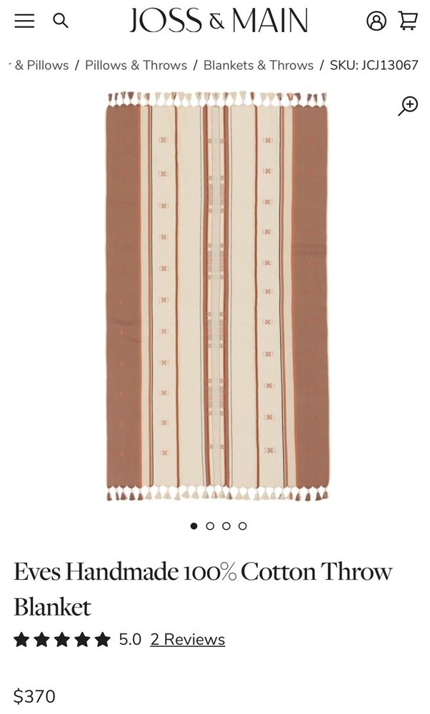 NEW Joss & Main Eves Handmade Woven 100% Cotton Throw Blanket Rug or Tapestry. Shipped with USPS Ground Advantage.