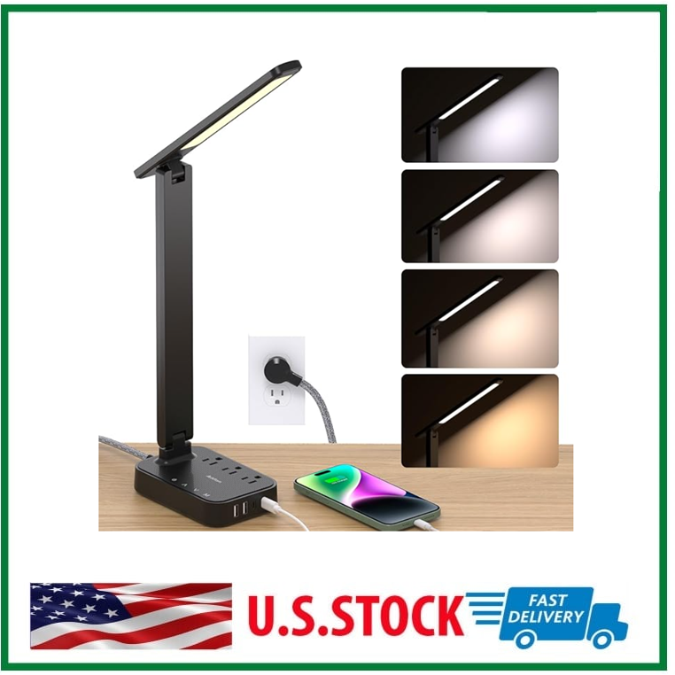 LED Desk Lamp, Power Strip with 3 Outlets 4 USB Charging Ports, 4 Modes 5 Level Brightness Touch Lamp Description: LED Desk Lamp - Features 4 color temperatures and 5 adjustable brightness with 6500k illumination, enabling you to customize the light you want. This desk light can be easily controlled by the integrated touch buttons. It can be used as an ambience lamp, reading lamp, nail lamp, night light, study lamp, desk lamp for home office, bedroom, college dorm room, living room and gaming room Deskop Power Strip with USB Ports - The small desk lamp for college dorm room is also equipped with 2 USB-C port, 2 USB-A ports and 3 3-prong AC outlets, making your phone, tablet, kindle, watch, humidifier and other electronic devices are charged whether the lamp is on or off, building your own working station. Fully save your time and space Multi-Angle Adjustable Table Lamp - The lamp for desk can 180° adjustable up and down, right and left, allowing you to fine-tune the light direction for greater lighting range and flexibility. With 90° foldable lamp arm, fully foldable, small footprint, space-saving. Eye Protection LED Lamp- No flicker, no glare, no blue light, no ghosting. The office desk lamp is an eco-friendly eye protection desk lamp, designed to minimize eye strain during long reading or working sessions. Home office desk essentials you must haves! Plug In and Use - This usb c power strip with 45° low profile right angled flat plug and 5 feet extension cord, you can carry it anywhere. It not only a table lamp, but also a multi-function desktop power strip wtih usb charging station. Features: Color: Black Size: 5 FT Finish Type Matte Product Dimensions 11.8"D x 3.75"W x 14.56"H Item Weight 1.2 Pounds Lamp Type Desk Lamp SHIPPING We are always working hard to ensure your package arrives as soon as possible. Please understand that some factors like weather, high postal traffic, and the performance of shipping companies are outside of our control. We offer free shipping to the lower 48 states and ship within 3 business days of payment, usually sooner. We do not accept P.O. Boxes. Please provide a physical address. For shipping outside of the continental USA, we only use eBay's Global Shipping Program. The item is shipped to KY and then sent to the rest of the world. International customers are responsible for all duties and taxes. Continue to check out in order to calculate costs for shipping the item to your country. Messages regarding eBay's Global Shipping Program MUST be directed at eBay EXCLUSIVELY. PAYMENT We accept payment by PayPal only (Can accept all kind of credit cards) Please pay as soon as possible after winning an auction, as that will allow us to post your item to you sooner. Payment must be received within 3 business days of auction closing. Before buying, please make sure your PayPal and eBay address is correct. If not, please correct it before payment. We have confidence in our products, but if you are not fully satisfied please contact us within 30 days of purchase and you will get full refund of your money. Return the product in the same condition you received it. Please note - return shipping will be paid by the buyer.