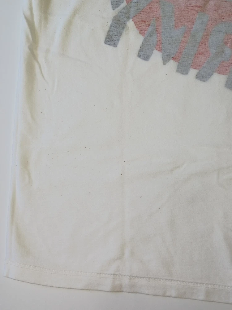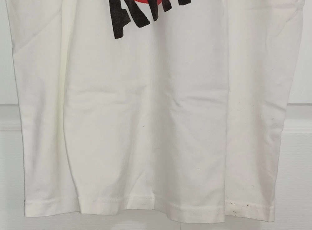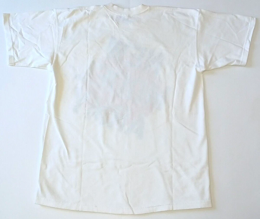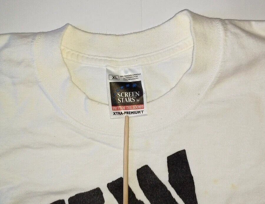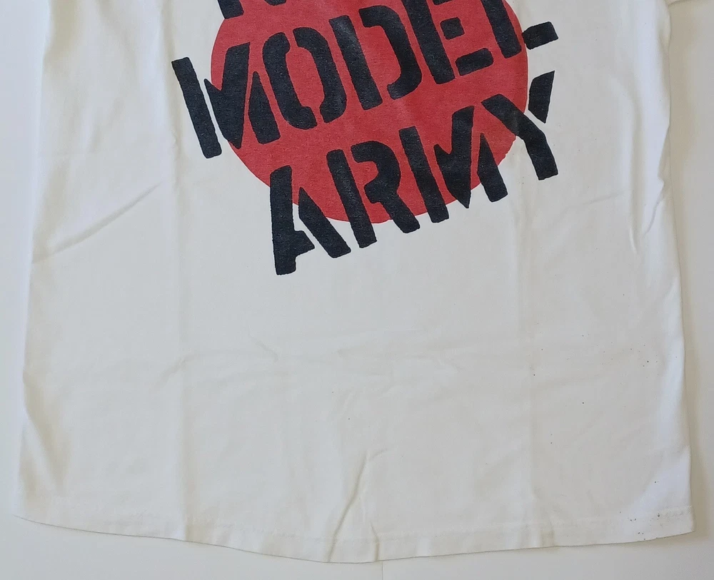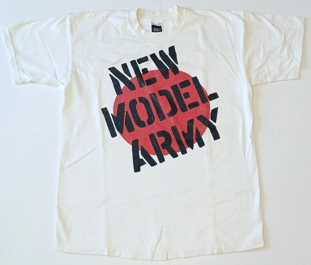 This authentic XL New Model Army T - Shirt is an officially released item from the early 2000s. I am the original owner and purchased it directly from the band's website sometime in the early 2000s. It has been safely stored in a completely smoke-free environment for close to twenty years . It was gently washed and folded and placed in closet storage close to twenty years ago and remained there until the time of this listing. It is a Screen Stars Fruit Of The Loom 100% Cotton XL Xtra-Premium T . This shirt is a true Extra Large. Please see below for select measurements. From the bottom center of the neck opening to the bottom of the shirt is just under 28" Shoulder to shoulder is 22 ". Underarm to underarm is approximately 23 " From the top of the shoulder to the bottom of the shirt is a little over 30 " Measurements were taken with the shirt lying neatly flat on a table. This shirt is still soft and is definitely an extra large heavyweight. The screen has faded some. It was washed a couple of times to try and bring the size down. Though the brightness of the white material varies in some pics due to inconsistent lighting, it is actually still a fairly vibrant white in most places. There are patches of spots in areas on both the inside and the outside of the shirt . The spots vary from slight discoloration to a more yellow, gold or brown . The shirt was not really ever worn and was only tried on to assess the size, so the spots must have been the result of a washing machine incident or laundry area splash . Most of the spots were difficult to capture. The last ten images are a bit larger and were left a little darker to try and bring them out . The last four images are inside out . The majority of the spots in the back are in the lower third . The are quite a few small spots in the front. The highest concentration is in the bottom right quarter . The item pictured is the exact item that you will receive. It will ship with care in a crisp rigid cardboard mailer . Items ship on the following business day . Friday purchases made after 2:59 AM ET will ship on the following Monday (or Tuesday if Monday is a USPS holiday ) Please see the shipping details section for the rate to your area. Shipping can be combined for multiple items and will be based upon total weight and destination. To be eligible for combined shipping rates, all items must be paid for in one single payment. Thank you for your interest.