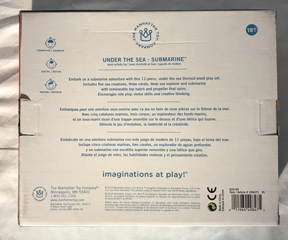 NEW Manhattan Toy Co Under The Sea Submarine Wood Activity Set 18 MO & Up. Condition is "New". Box does have some wear (as seen in pictures). If you have any questions please feel free to ask. (Sellers notes : box 2)