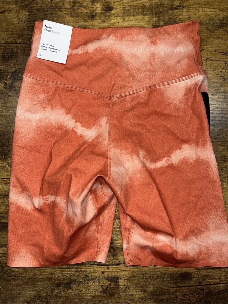 Elevate your workout wardrobe with these NEW Nike One Luxe Mid-Rise Training Shorts, perfect for any active occasion. Designed with a blended fabric of 76% polyester and 24% spandex, these shorts offer a comfortable fit with the right amount of compression for your buttocks, waist, and abdomen. The elastic closure ensures a secure fit while the lined interior provides additional comfort. These Nike shorts come in a vibrant orange color and are sized XS, making them perfect for women who want to make a statement while working out. Whether you're hitting the gym, running, biking, or lifting weights, these shorts are versatile for all types of cross training. They are machine washable and easy to care for, ensuring that they will be a long-lasting addition to your activewear collection. 9567