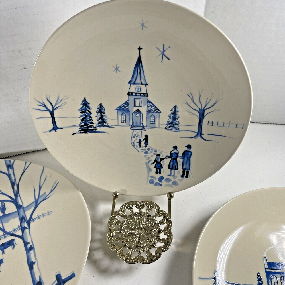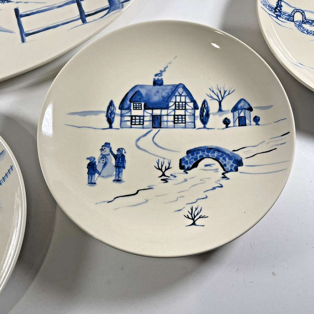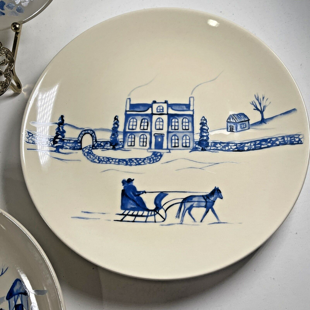 NEW OLD STOCK Creative Co-Op Stoneware 16" Platter & 4x 8" Plates w Winter Scenes...