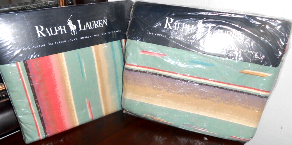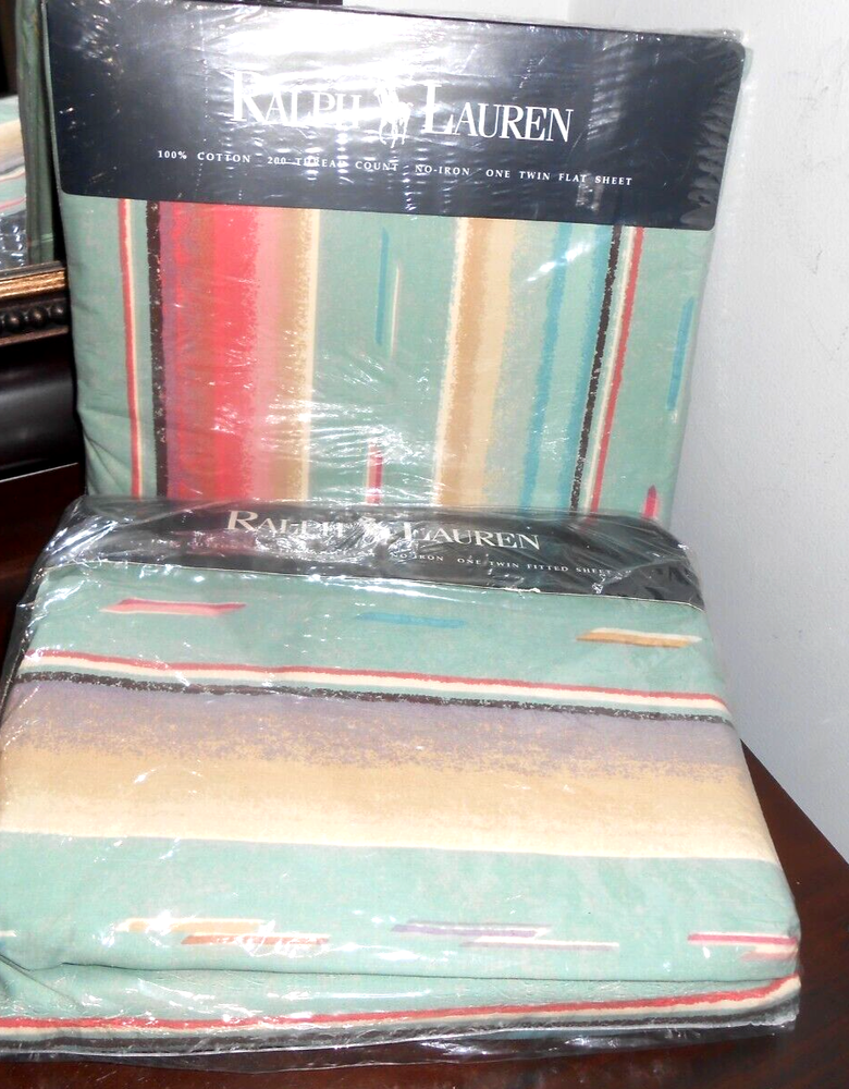 RALPH LAUREN Home Southwest Mesa Collection 1 Twin Flat Sheet (new, in package) 1 Twin Fitted Sheet (new, in package) Rare! Machine washable I'm happy to combine shipping and purchases...