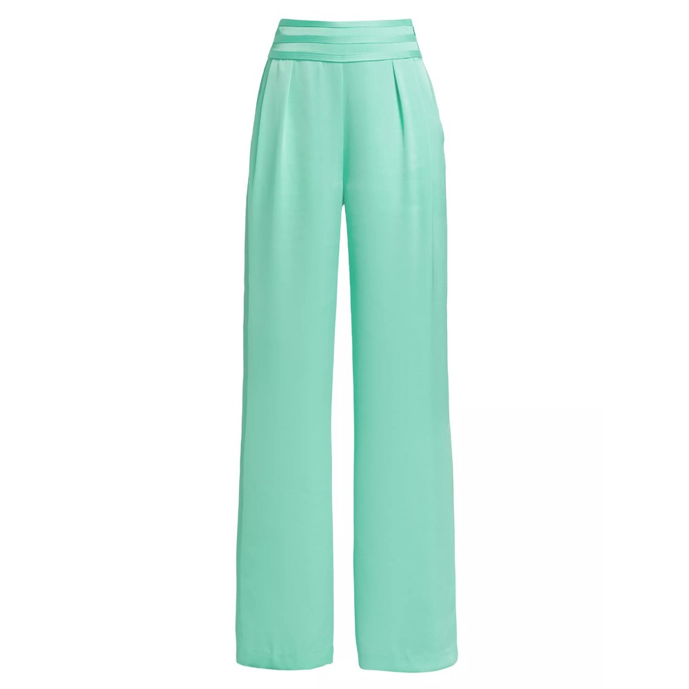 Wide-leg pants made of flowing fabric. Banded waist Side slit pockets Back jetted pockets Side zip closure 100% polyester Dry clean Imported SIZE & FIT Inseam, about 29" New with tags