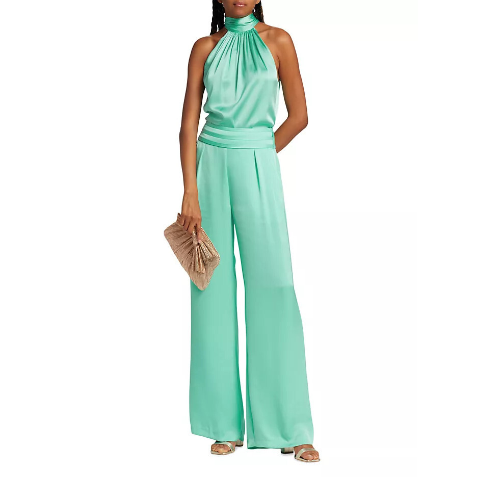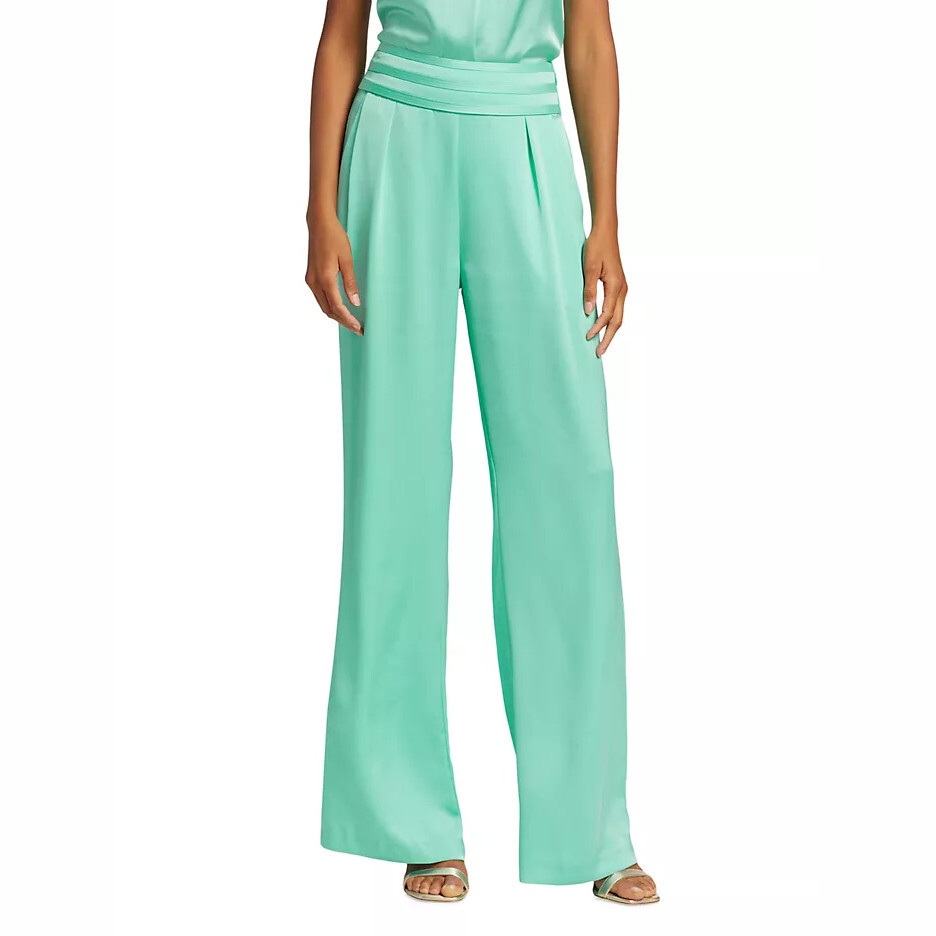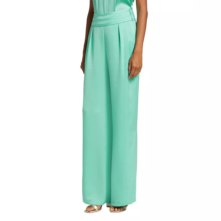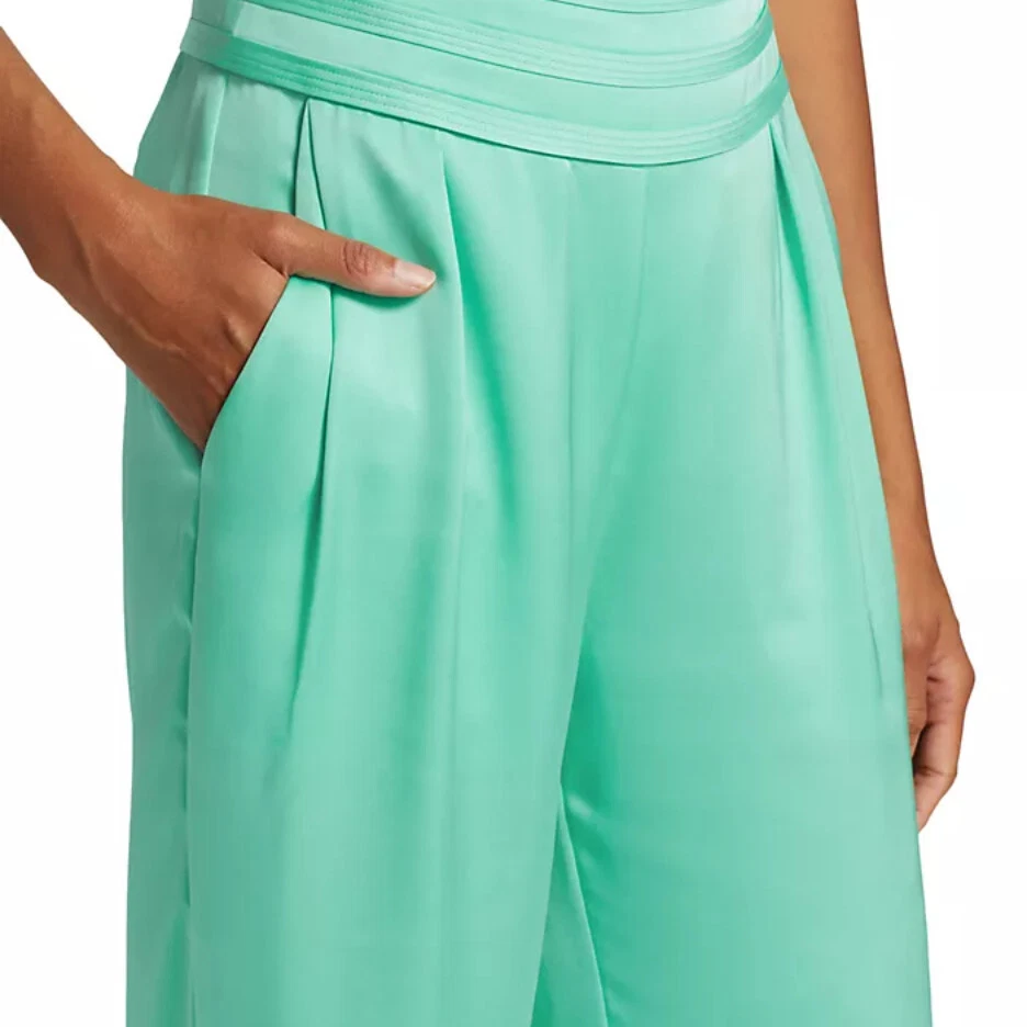 Wide-leg pants made of flowing fabric. Banded waist Side slit pockets Back jetted pockets Side zip closure 100% polyester Dry clean Imported SIZE & FIT Inseam, about 29" New with tags...
