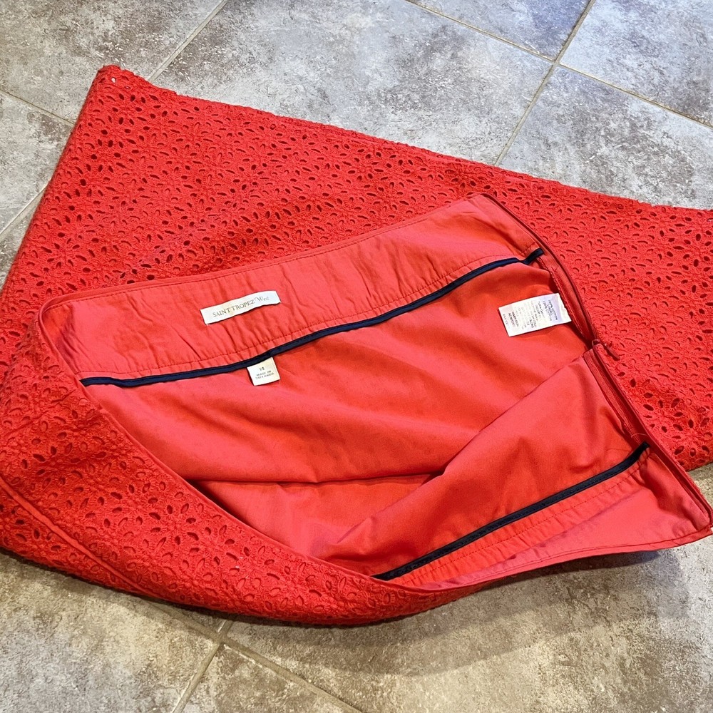 Saint Tropez West Eyelet Floral Cotton Mini Skirt in a vivid shade of orange. This skirt is perfect for any occasion, whether it's a wedding, party, or casual outing. The skirt features a zip closure and a mid-rise waist, making it comfortable and easy to wear. Machine washable. - NWOT, flawless - fully lined - 100% cotton - size 14 - 20” length - please see photos for additional measurements - Approximate measurements, not exact Casual workwear party cocktail date night chic romantic wedding church concert special occasion vacation resortwear I ❤️ offers! ✅ Cross-listed ⭐️Trusted 5 star seller⭐️ 🍋 CLEAN, smoke-free home. Fast shipping! - Please review all photos prior to purchase. - Due to differences in lighting & device screens, color may slightly vary.