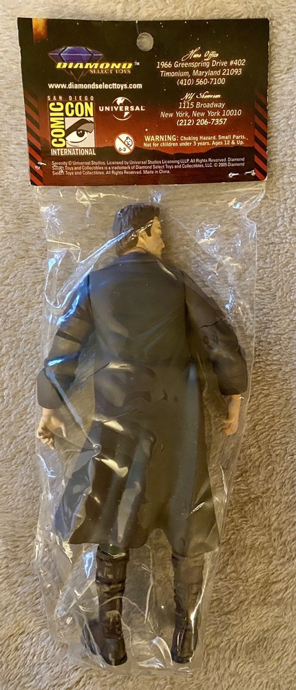 This listing is for SDCC Serenity Figure Malcom Reynolds by Diamond Select Toys. Brand new in packaging this figure was a 2005 San Diego Comic Con exclusive. Ages 12 and up.