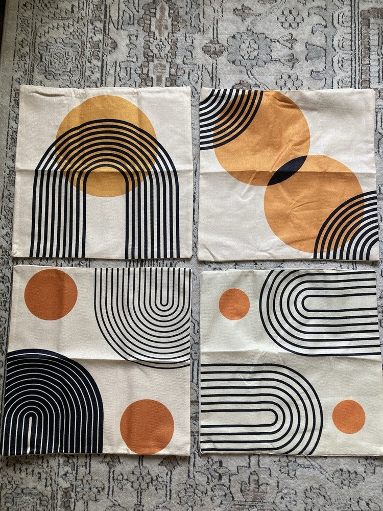 Brand new without package. Two are a lighter orange and the other two are a darker orange. They measure approx 17.5” X 17.5” Covers only, no inserts included....