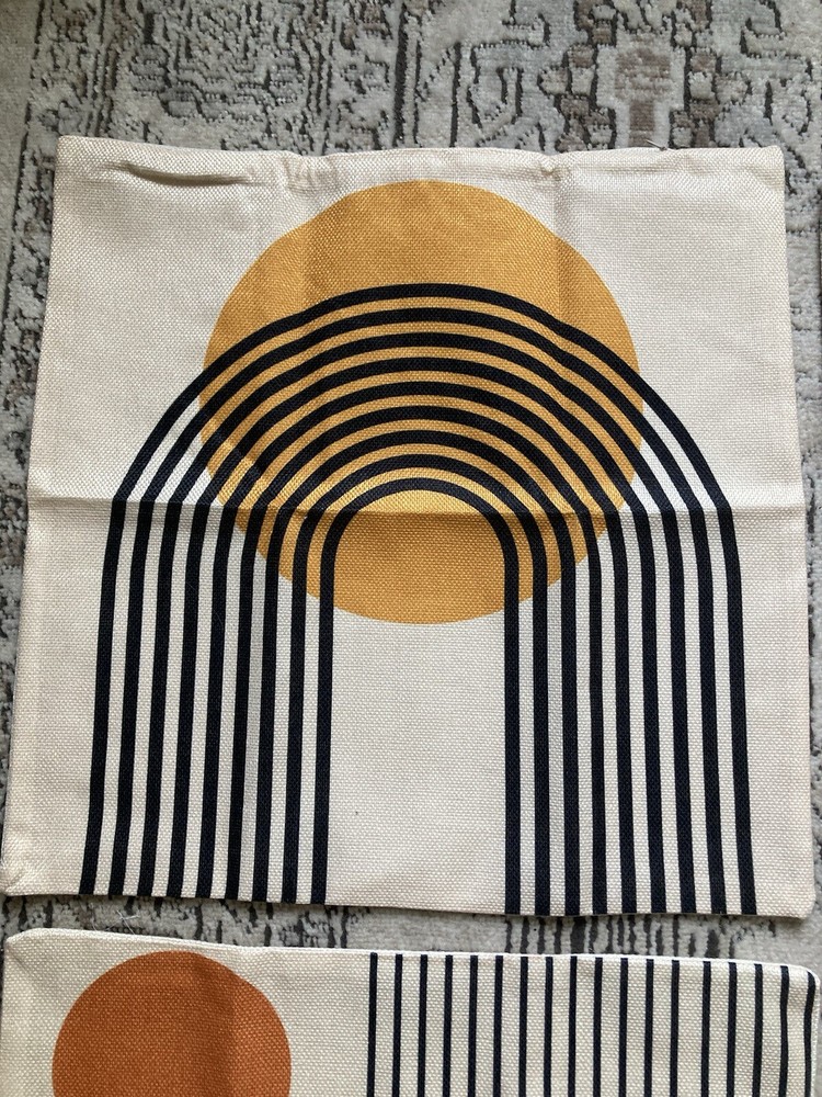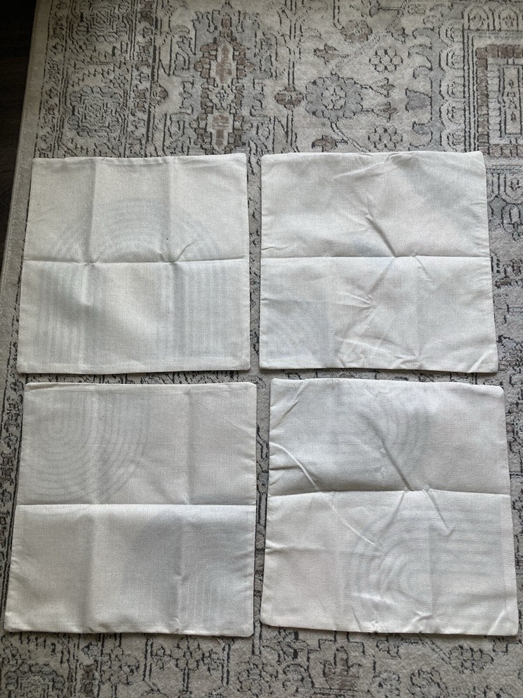 Brand new without package. Two are a lighter orange and the other two are a darker orange. They measure approx 17.5” X 17.5” Covers only, no inserts included.