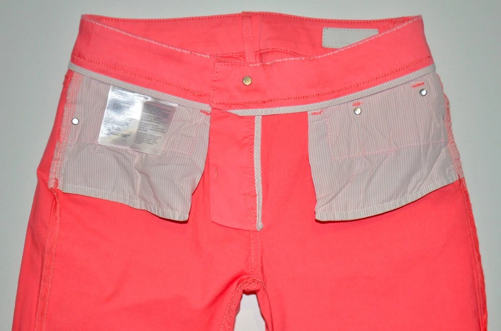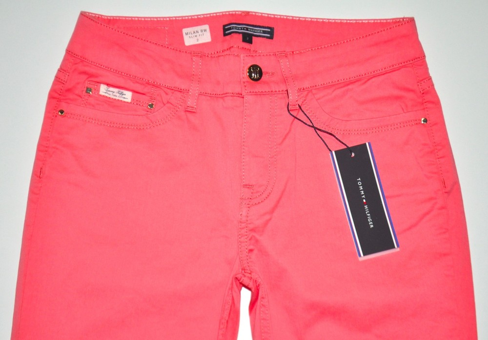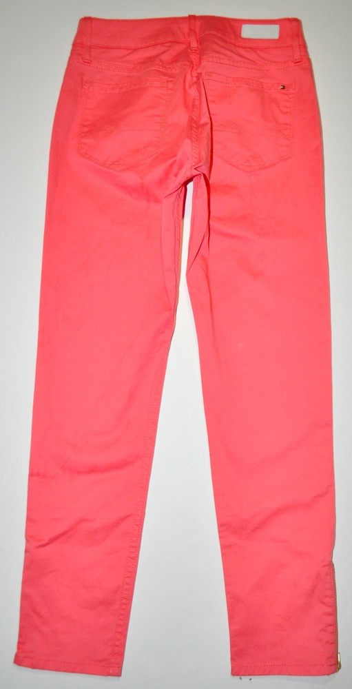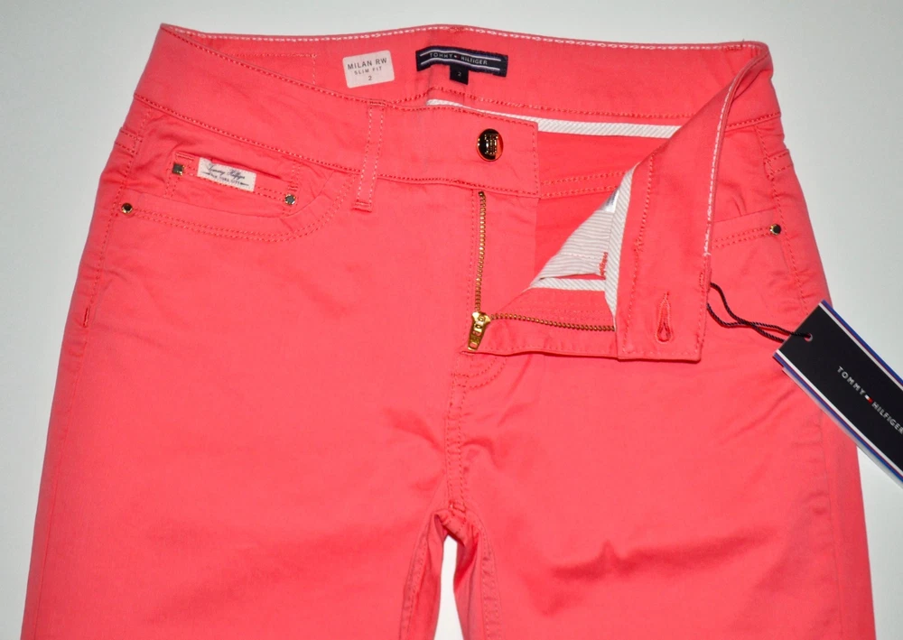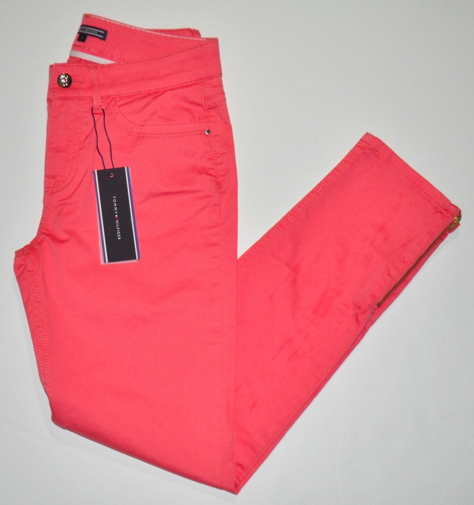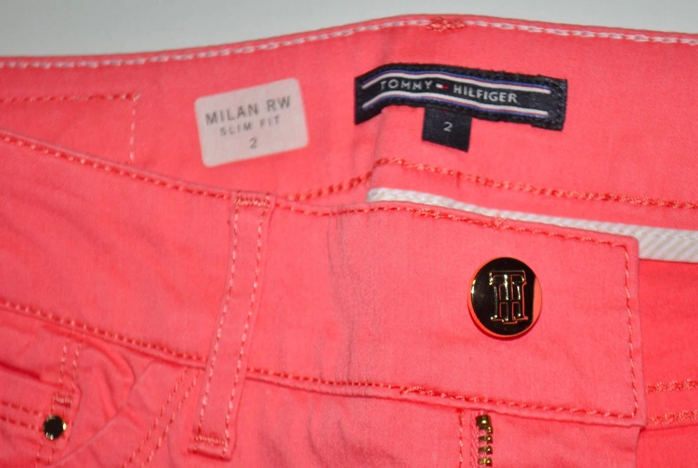 Tommy Hilfiger women's ankle jeans, size 2 stretch (actual measurements: waist - 26" length - 26 3/4") Please look above to see all photos and look below for item condition, description and measurements. They are authentic and GORGEOUS!!! Condition: New With Defects - $99 (I marked new with defects because front right pant leg from about the knee down has some lines / streaks going down the leg (photo 7). Not sure if something spilled on them while at the store or if this is part of the wash as it states: "A special process was used to crate a unique garment, which may include variations after cleaning. The appearance may change." It also states: "the colors in this garment may change with prolonged exposure to light." It may lighten or even come out all together when cleaned but as is, it is super noticeable. Description: * Milan RW Slim Fit * Ankle Jeans * Coral (pink) * Mid-rise * Zipper Front with branded metal closure * 5 pockets: 3 front and 2 back * Coin pocket has beautiful rivets and label * Back rioght pocket has cool lofgo design rivet * Cute pocket liners * Nice label on back right side of waistband * Materials: 98% Cotton, 2% Elastane * Jeans stretch for a nice and comfy fit! * RN 77806 * CA 20781 * 12/14 Measurements: (all measurements are approximate and were taken with item laying flat, see photo 2; waist, hip and bottom of pant leg openings were doubled for total size) Waist - 26" Hips - 34" Front rise - 8 3/4" Back rise - 12.5" Thigh - 9 1/4" Inseam - 26 3/4" Bottom of pant l eg opening - 11" *Please compare above measurements to a favorite fitting pair of capri's to better gauge how these will fit. Also, please look at the photos, read all information on item and if you have any questions regarding this item, be sure to ask before purchasing. * International buyers are to handle customs forms, duties, etc. *I will leave feedback as soon as possible. After you receive your item, please return the favor :) A Positive Five Star Rating is very important in the world of e-Bay! If you have any concerns regarding this transaction, please contact me right away. Customer satisfaction is very important to me! *Thanks for stopping by and happy shopping :) Sincerely, The Thrift Star